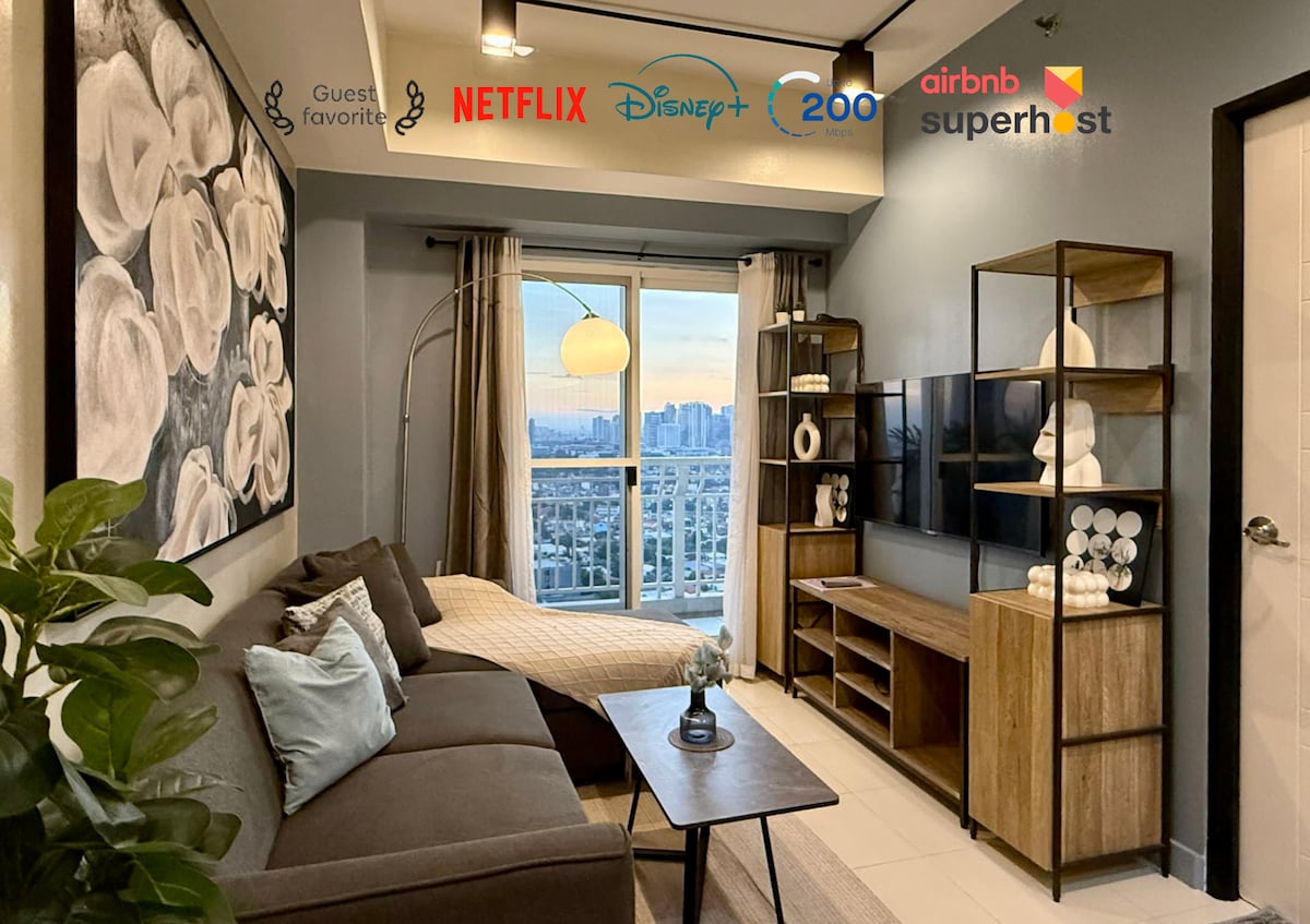 Փախեք դեպի բարձրահարկ առանձնաբաժին ՝ BGC - ի հիասքանչ տեսարաններով, կինեմատոգրաֆիական JBL շրջապատի ձայնով և 55 դյույմանոց Full 4K Smart հեռուստացույցով ՝ LED տրամադրության լուսավորությամբ. ձեր լավագույն գիշերային ապաստարանը ։ Ծանոթացեք բարձրակարգ երկդիրքերին, հետո սուզվեք գերհարմարավետ Emma® ամպային մահճակալի մեջ ՝ կատարյալ գիշերային քնի համար ։ Քաղաքի աղմուկից հեռու, բայց ամեն ինչին մոտ, վայելեք արագ Wi - Fi, Netflix, Disney+ և այլն: Իսկապես լիովին կահավորված տարածք ՝ կինոթատրոն 27 - ի հետ անխափան, անմոռանալի հանգստի փորձառության համար ։