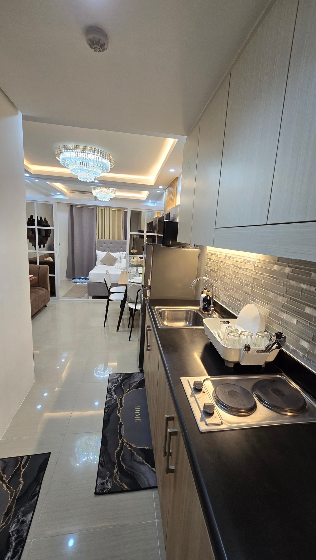 Մեծ 32 մ² 1 սենյակ-15 հարկ 3 հանգույց 3 աշտարակ MOA-ի մոտակայքում։ High Spd մանրաթելային Wi - Fi ։ Վայելեք կարաոկե, Netflix, YouTube և ավելին 55 դյույմանոց QLED 4K հեռուստացույցով, որն ունի սաունդբար։ Լիովին կահավորված խոհանոց՝ RO ֆիլտրով, տաք և սառը խմելու ջրով, վառարանով, միկրոալիքային վառարանով, կաթսաներով և սպասքով։ Տաք ցնցուղ՝ մարմնի գելով և շամպունով։ Ննջասենյակում կա queen չափսի մահճակալ՝ հաստ, հարմարավետ ներքնակով։ LR-ում կա առաստաղի օդափոխիչ, իսկ բազմոցը վերածվում է երկտեղանի մահճակալի։ Պատշգամբ՝ MOA-ի և հանգստյան օրերի հրավառությունների տեսարաններով։ Հեշտ է հասնել MOA։ Մոտ է օդանավակայանին, SM Arena-ին, SMX-ին, Մանիլայի ծոցին, խաղատներին, ռեստորաններին և այլն