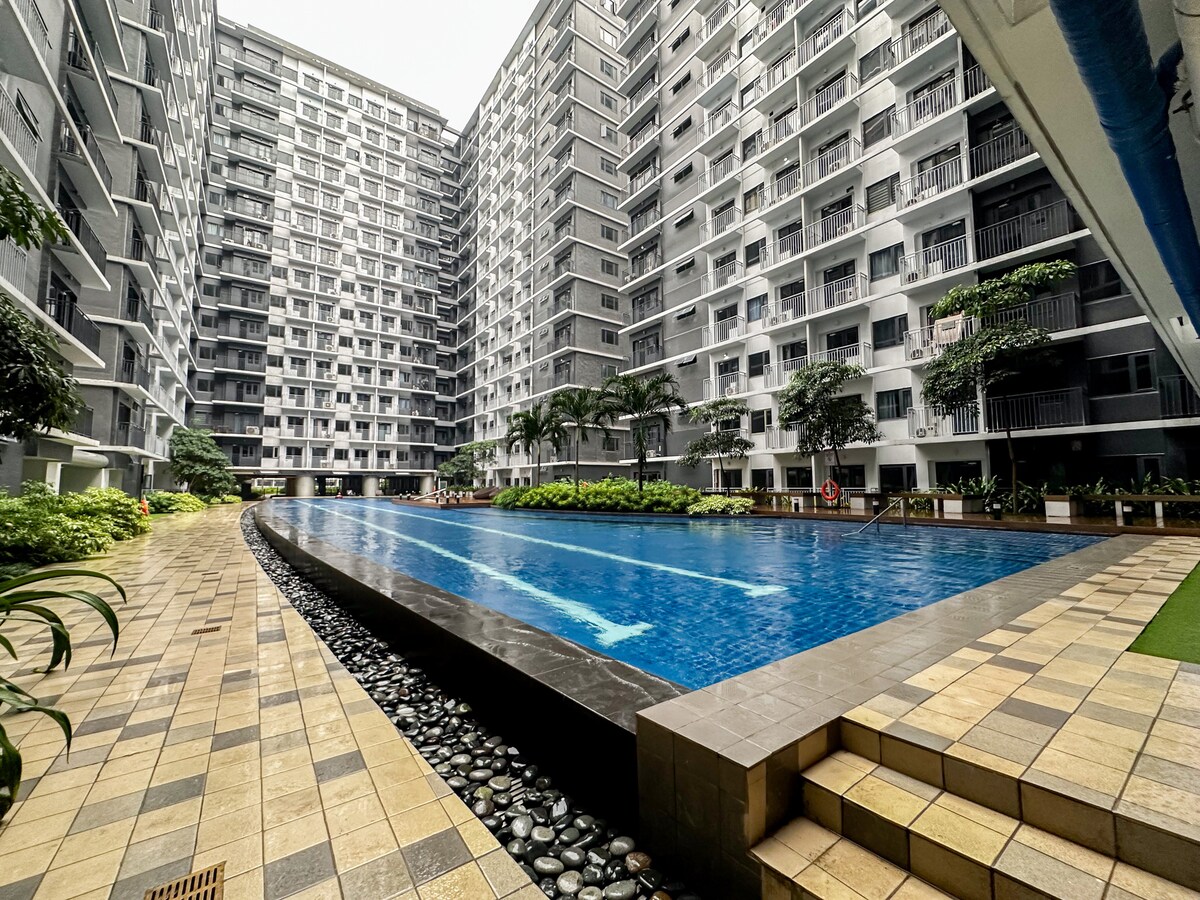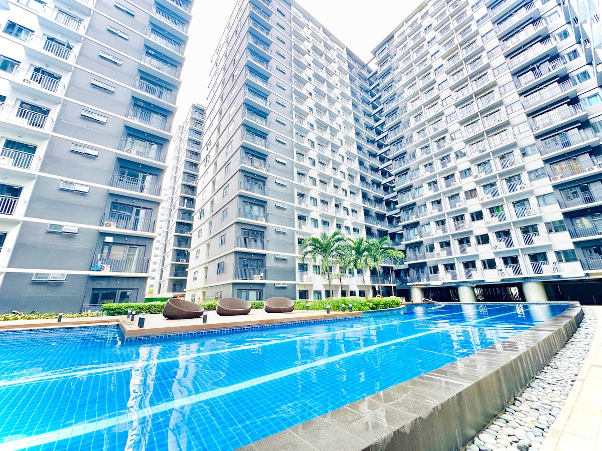 Բարի գալուստ մեր մինիմալիստական դիզայնով 1 ննջասենյակ ՝ լողավազանի հիանալի տեսարանով ։ Հանգստացեք ընդարձակ բնակելի տարածքում ՝ մեր սմարթ հեռուստացույցով, պատրաստեք ձեր կերակուրները մեր լիովին կահավորված խոհանոցում ՝ ճաշելու կամ պարզապես վայելելու պատշգամբը նայելու պահերը: Բայց ամենակարևորը ՝ հանգիստ քնեք մեր հարմարավետ մահճակալներում ։ Գտնվում է ոտքով հեռավորության վրա մինչև Ikea, SMX Convention Center, Moa Arena և Ասիայի մոլի շրջակայքը ։ Զբաղվեք մոտակա ռեստորաններով, սրճարաններով և հարմարավետ խանութներով ՝ կոնդոմինիումից դուրս ։