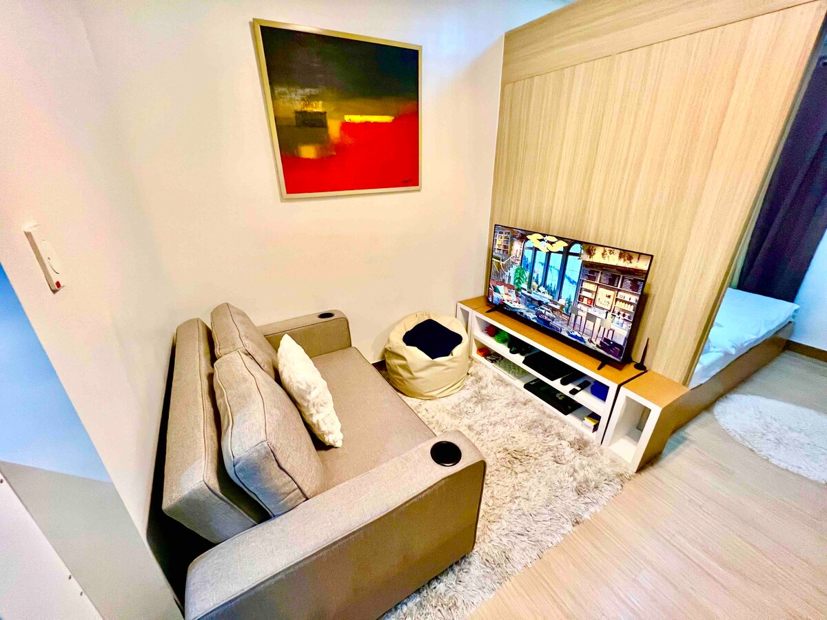 Քաղաքային հանգիստ Trees Residences – ում. գտեք մատչելի և հարմարավետ քաղաքային հանգիստ, որը կատարյալ է 2 (մինչև 4) հյուրի համար ։ - Մեր լավ կահավորված տարածքում կան հիմնական սարքեր և Netflix - ով սմարթ հեռուստացույց ։ - Վայելեք լողավազանի ժամանակը կամ լիցքաթափվեք նախասրահում: - Ուսումնասիրեք մոտակա հարմարությունները ՝ Ալֆամարտ, Թեյլիվ, Մակդո և այլն ։ - Զբոսնեք դեպի Սմ Ֆեյրվյու, Այալա տեռասներ և Ռոբինսոն մոլ ։ - Ինքնուրույն ժամանում թվային կողպեքով Հարմարավետ, լավ կահավորված և գրավիչ. ձեր քաղաքային հանգիստն ընդամենը մեկ սեղմումով է »։