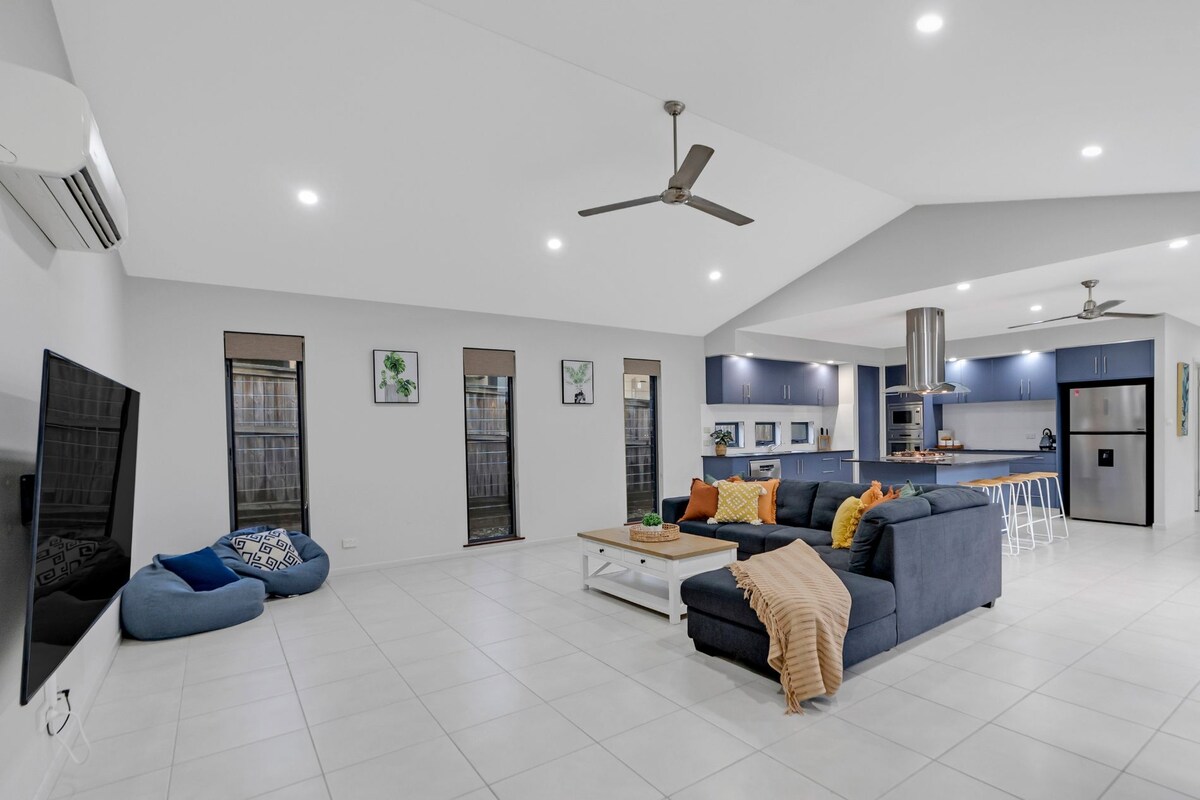 Featured Additions Luxury queen-over-queen bunk with king single trundle (available upon request) Gym & Games Room: table tennis, air hockey, billiards, basketball, arcade & Great Barrier Reef mural Yard fun: giant Jenga, giant Connect 4, slip & slide, pool inflatables, yoga mat About the Home Located in peaceful Trinity Park, the property includes a pool, green outdoor space for tanning, fast Wi-Fi, full kitchen, smart TV with streaming, books & games—and even a 2023 SUV available for hire.