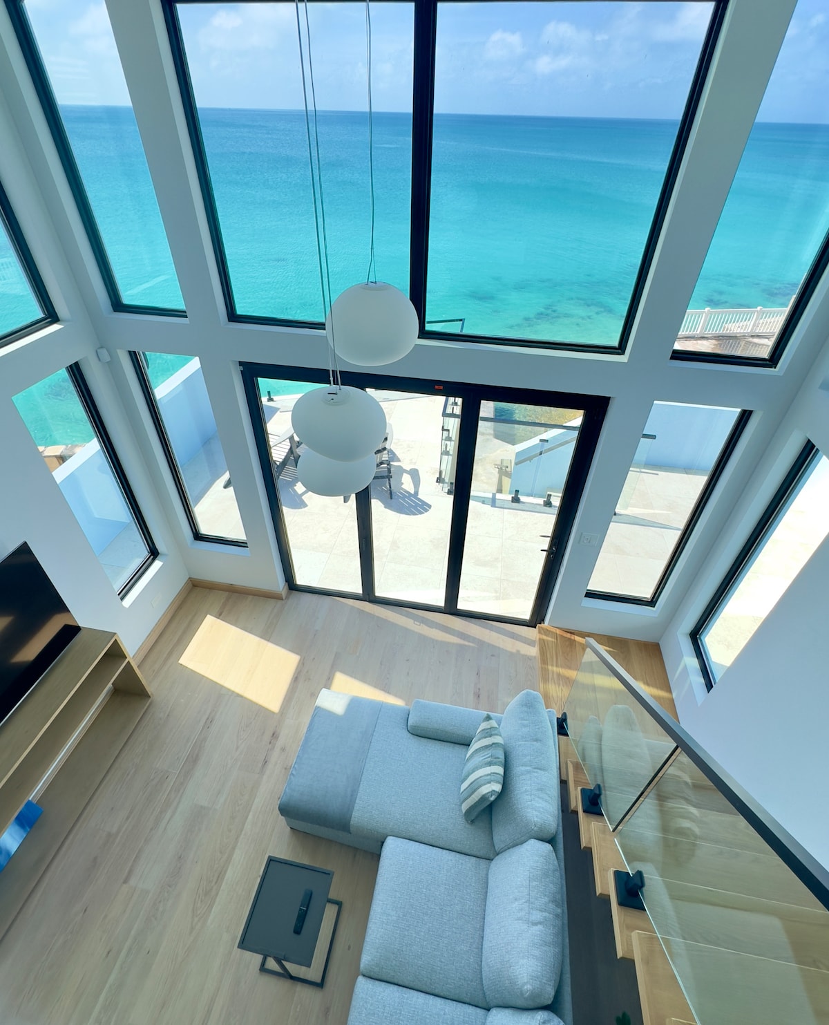 Օվկիանոսի ափին գտնվող լոֆթ, որն ապրում է անխոչընդոտ տեսարանով