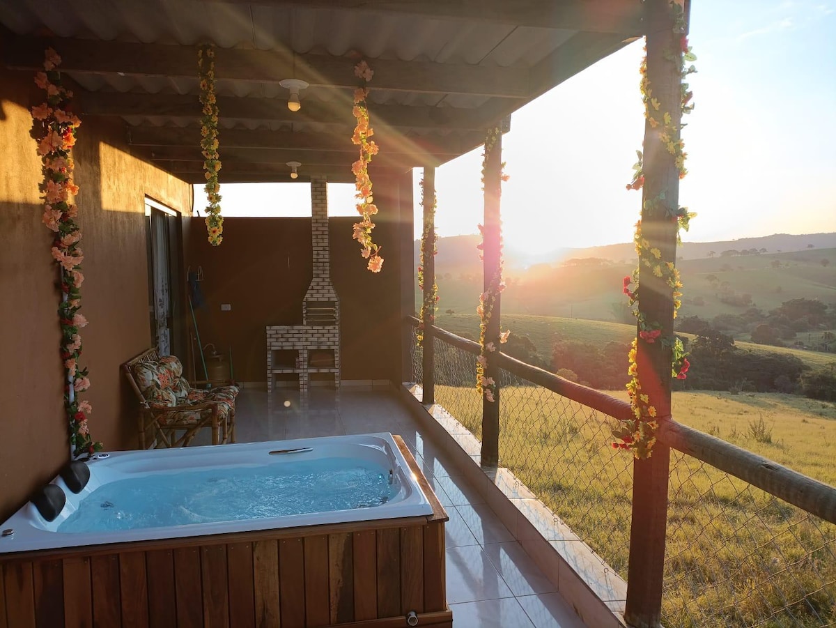 Imagine-se ao amanhecer, estar rodeado pela natureza da Serra da Mantiqueira, enquanto toma um café, livro favorito em mãos, e senta-se na varanda sentindo a brisa da manhã e escutando canarinhos cantando. A tarde, na churrasqueira colonial, preparar refeição para toda família, diversão na piscina e hidromassagem aquecida. O por do sol, no horizonte entre as montanhas vai se escondendo, e como uma obra de arte em transmutação, a cor do céu percorre o espectro até a noite estrelada no campo.
