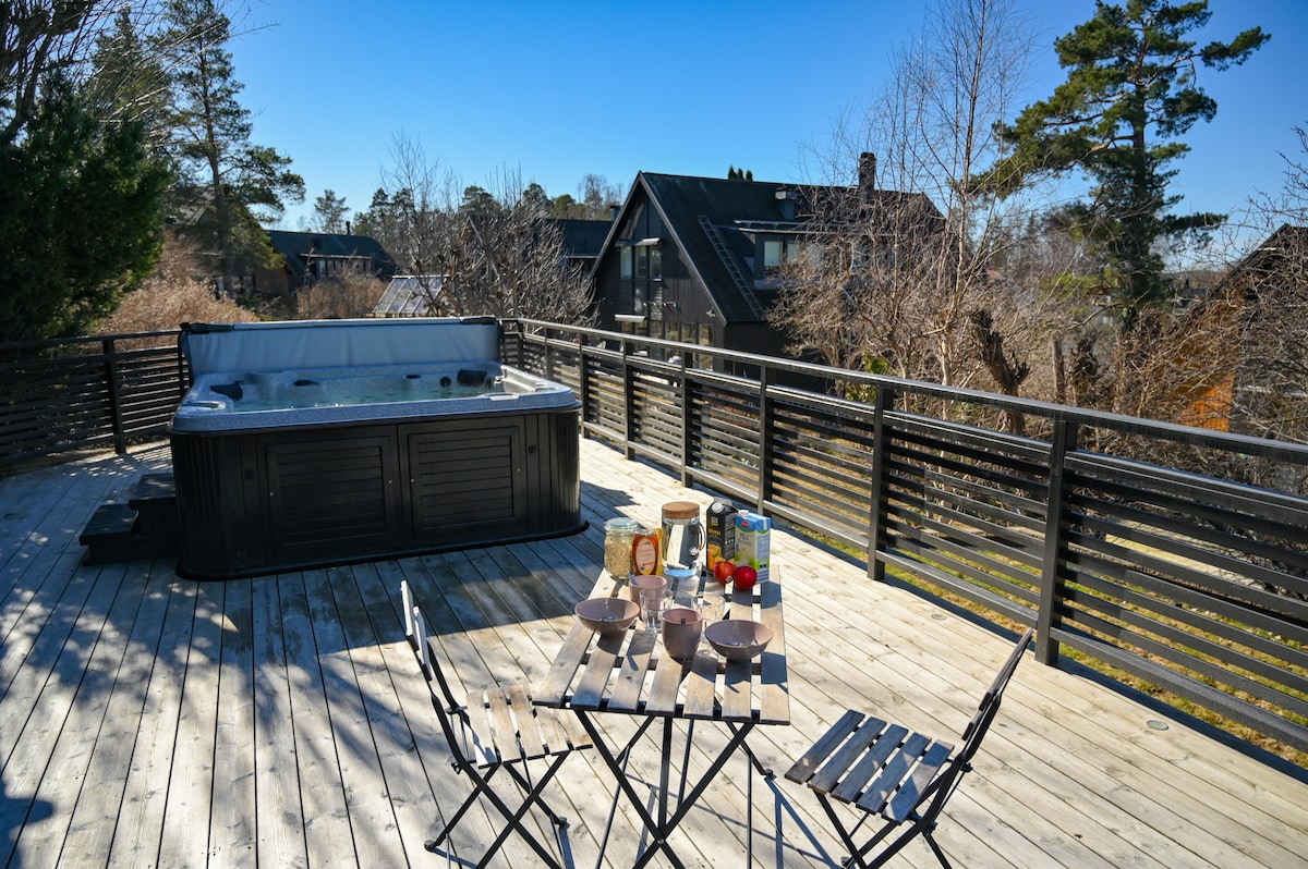 Vårat gästhus ligger mitt emellan Stockholms flygplats (Arlanda) och Stockholm. På 5 minuter tar du dig till pendeltåget som tar dig till Stockholm på 25 min. Du kommer att älska vårat ställe på grund av denna idyll bestående av gamla hus från början av förra seklet. Boendet rymmer par och familjer (med barn), finns även barnstol + barnsäng. Det finns två golfbanor på promenadavstånd samt närhet till badsjöar. Cyklar finns att låna. Köpcentrum med restaurang och matvaruaffär finns runt hörnet.