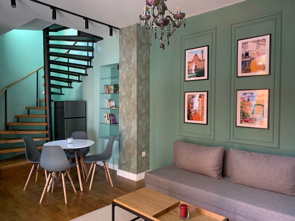 Լուսավոր և հարմարավետ բացօթյա բնակարան Սոֆիա քաղաքի կենտրոնում ՝ արդյունաբերական տեսքով ։ Բնակարանը գտնվում է Սոֆիայի սրտում ՝ Սոֆիայի լավագույն տեսարժան վայրից ՝ Ալեքսանդր Նևսկու տաճարից 5 րոպե հեռավորության վրա և Սերդիկա մետրոյի կայարանից ոտքով 7 -8 րոպե հեռավորության վրա ։ Բոլոր հիմնական տեսարժան վայրերը հեշտ է ոտքով հասնել: Շատ շքեղ սրճարաններ, լավ ռեստորաններ և խանութներ տարածաշրջանում: Մոտակայքում կան նաև բանկոմատ և դեղատուն ։
