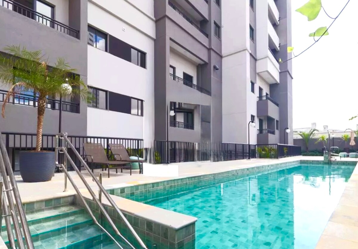 Apartamento com ar condicionado/na região de compras do Brás a 5 mi. a pé. 2.4 Km-Templo de Salomão. 3 min da Rua do Gasómetro. 5 min a pé da Feira da madrugada 10 min a pé do Lojão do Brás. 2.2 km da Rua 25 de Março. 1.7 km do Mercado Municipal. 7.7 Km do Estádio Allianz Park. 15 km do Estádio do Morumbi. 5.3 Km da AV.Paulista. #Liberdade #Center Norte. RESORT Urbano com a maior piscina de borda infinita da cidade . Conta com uma confortável cama Queen para um merecido descanso.