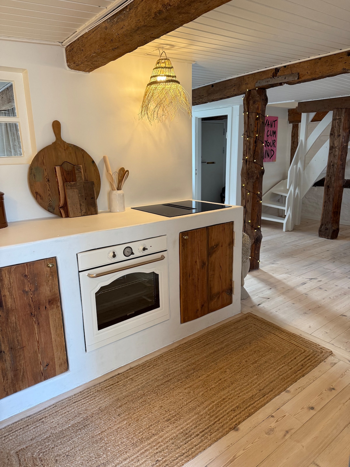 Cozy annex/backhouse with a private living area, sleeping space, and kitchenette – Please note: Bathroom, kitchen, and a small gym are located in a separate building just 10 meters away. Outdoor area with a fire pit and grill, peace and quiet. We live on the farm ourselves in case you need anything. An ideal spot for both a weekday escape and focused work. At the same time, close to the Higway, so you can get on quickly.