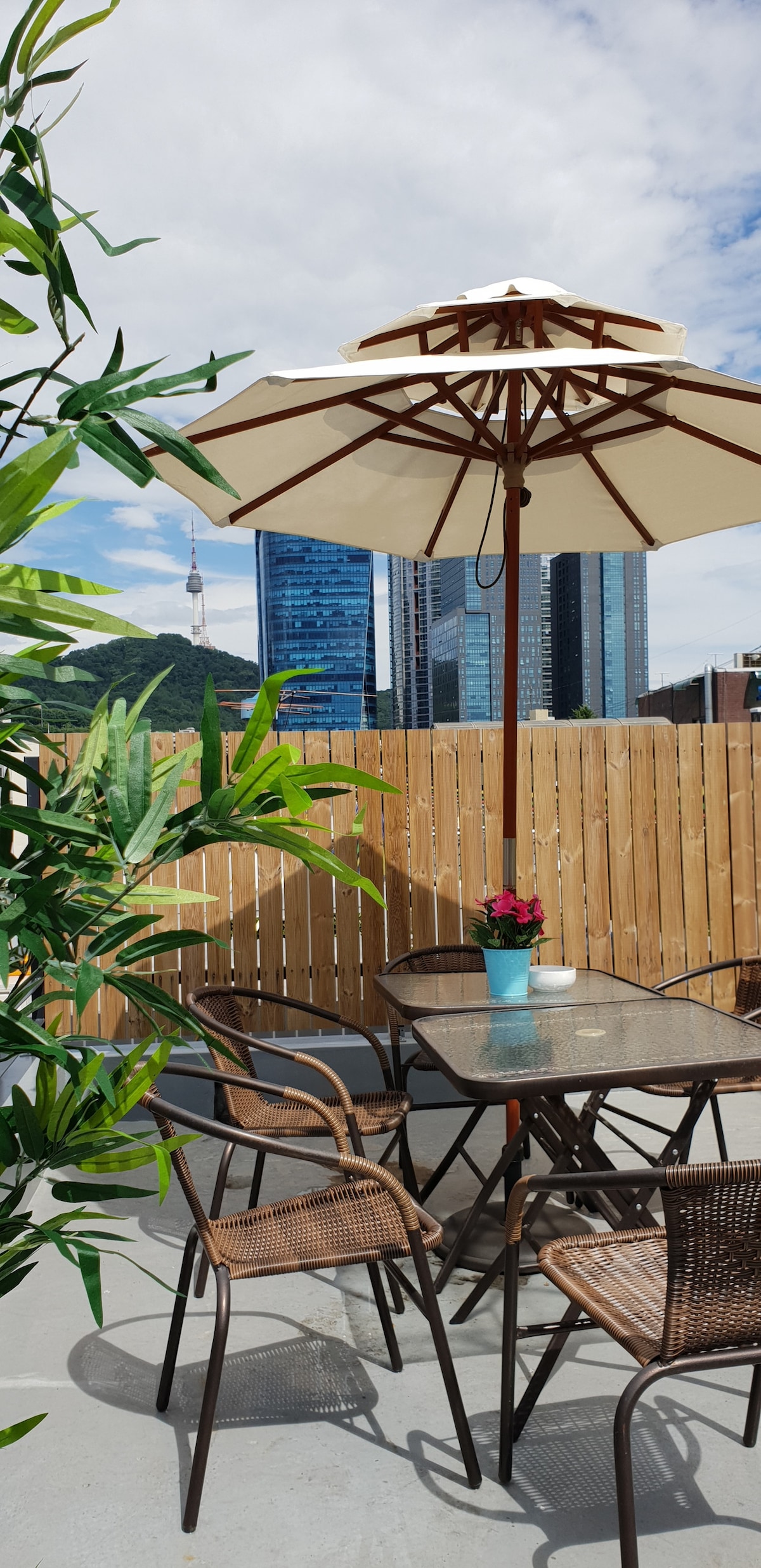 Fully renovated and cozy penthouse apartment with great views of Seoul. Don't miss the one from the hinoki bath. Portable WiFi provided. Great location in trendy Gangnam, one of the busiest districts of Seoul, blending modernity and tradition... Right out of Subway line n. 9 Bongeunsa station with Bongeunsa temple, Coex Mall and SM Town literally at your doorstep. 강남 도심과 한강, 그리고 녹음과 전통의 미가 어우러진 봉은사까지 파노라마 뷰를 즐길 수 있는 펜트하우스입니다. 고급 자재를 사용해 풀리노베이션하여 모던하고 쾌적합니다. 히노끼욕조에서 도심 노천탕 분위기 속에 피로를 풀어보세요.
