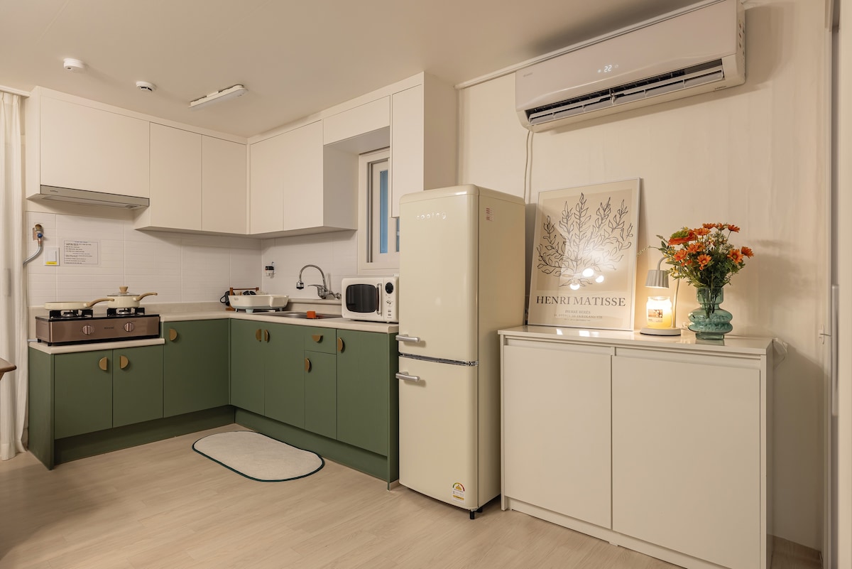 Այս նոր երկսենյականոց կացարանը, որը ունի 2 queen-size մահճակալ, հարմար է գործնական ուղևորությունների և ընտանիքով երկարաժամկետ այցերի համար։ Ուզո՞ւմ եք գտնել հարմարավետ կացարան՝ առանց կայանման հետ կապված բարդ խնդիրների մասին անհանգստանալու։ Այս հանգիստ կացարանը օպտիմալ է բիզնես ուղևորների և բիզնես հաճախորդների համար։ Հարմար է գնալ Կանգդոն, Սոնփա և Ջամսիլ՝ Գոյեո կայարանից 5 րոպե ոտքով քայլելու հեռավորության վրա։ Հարմարավետ հանգիստ հաճելի, արևոտ տարածքում Մենք հյուրանոցի մաքրությանը ավելացրել ենք տան հարմարավետությունը Դա ամենաարդյունավետ ընտրությունն է այն հյուրերի համար, որոնք օգտվում են հասարակական տրանսպորտից։ 🏠 Սեփականության առանձնահատկությունները Կառուցվածքը՝ հարմարավետ երկսենյականոց (4 անձ/առավելագույնը 6 անձ) Մաքրություն. տրամադրվում է հարմարավետ անկողնային պարագա Ենթակառուցվածքներ՝ տան մոտակայքում կան շուրջօրյա խանութներ, սուպերմարկետներ, Daiso խանութ, հիվանդանոցներ և ռեստորաններ։ Տրանսպորտ՝ 5-րդ գծի Կորյո կայարանն ընկած է 5 րոպե քայլելու հեռավորության վրա։ Հարմար է գնալ «Lotte World» զվարճանքների կենտրոն և Ջամսիլ։ Զեղչ՝ երկարաժամկետ այցերի համար գործում են զեղչված գներ։ (Ցուցադրված է զեղչված գնով) Հարմարություններ՝ կա լվացքի մեքենա/չորանոց (համակցված) Խորհուրդ է տրվում՝ ընկերներ, ընտանիք, ուղևորություն Սեուլ, գործնական ուղևորություն, երկարաժամկետ այց, զույգեր, հիվանդանոց այցելություն Նշում. 4-րդ հարկ, որ կարելի է հեշտությամբ բարձրանալ առանց վերելակի