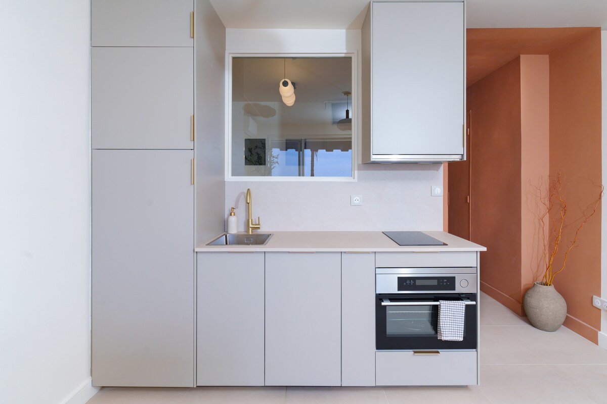 Ցնցող բնակարան՝ 2 ննջասենյակով և 1 լոգասենյակով (և առանձին զուգարանակոնքով), ուղղակի տեսարանով դեպի ծովը, լողափը և լեռը։ Այս սեփականությունը, որն ունի բոլոր ժամանակակից հարմարությունները (օդորակիչ, WIFI, APPLE TV...) և գեղեցիկ ձևավորում, ունի ամեն ինչ՝ լավ կահավորված խոհանոց (լվացքի մեքենա և առանձին չորանոց), մեծ հյուրասենյակ, հիանալի ճաշասենյակ։ Սպիտակեղենը և սրբիչները տրամադրվում են կոսմետիկ միջոցների նմուշների հետ։ Այն գտնվում է հին Անտիբիի սրտում՝ երկաթուղային կայարանի, ավտոբուսի և պրովանսական շուկայի մոտակայքում։