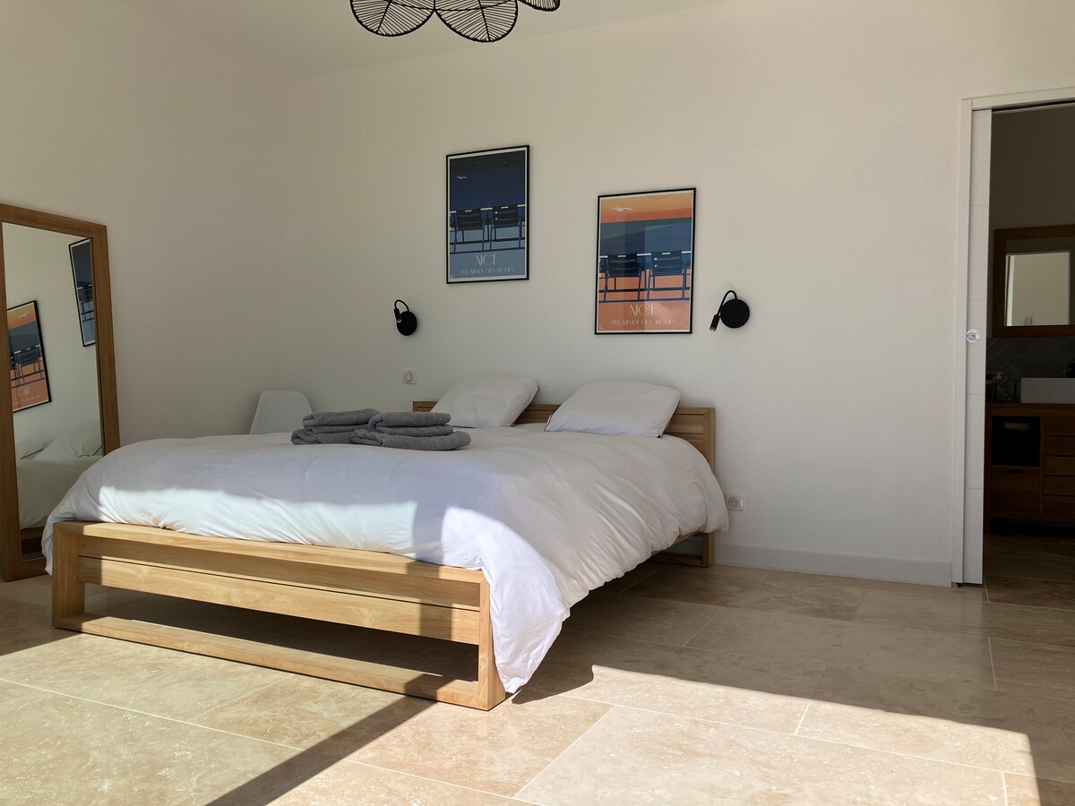 Située dans une magnifique bastide provençale entourée d’oliviers centenaires, cette chambre indépendante tout confort de 20 m2, avec salle de bain, WC et espace de travail, a été entièrement rénovée. Elle possède une entrée privée et un espace extérieur accessible par des escaliers. Vous pourrez garer votre voiture à l'intérieur de la propriété qui est clôturée et sécurisée. Ce havre de paix se trouve en position centrale sur la Côte d’Azur, à pied la gare de Biot et la plage sont à 15 minutes.