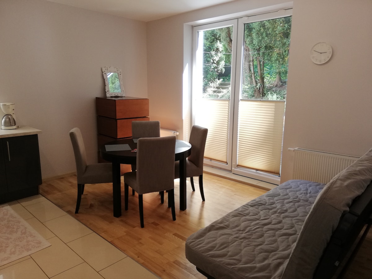Hi! You are welcome to stay at my bright and spacious apartment situated in the loveliest district of Gdynia. Gdynia Orlowo is magic place of houses and villas next to cliff. The apartment is 50 m2 and consists of 1 bedroom, 1 living-room with kitchen and 1 bathroom, just 500 m from the beach. Please read the detailed description to get to know the magic of my place and my idea of renting. See you in Gdynia, Monika:)