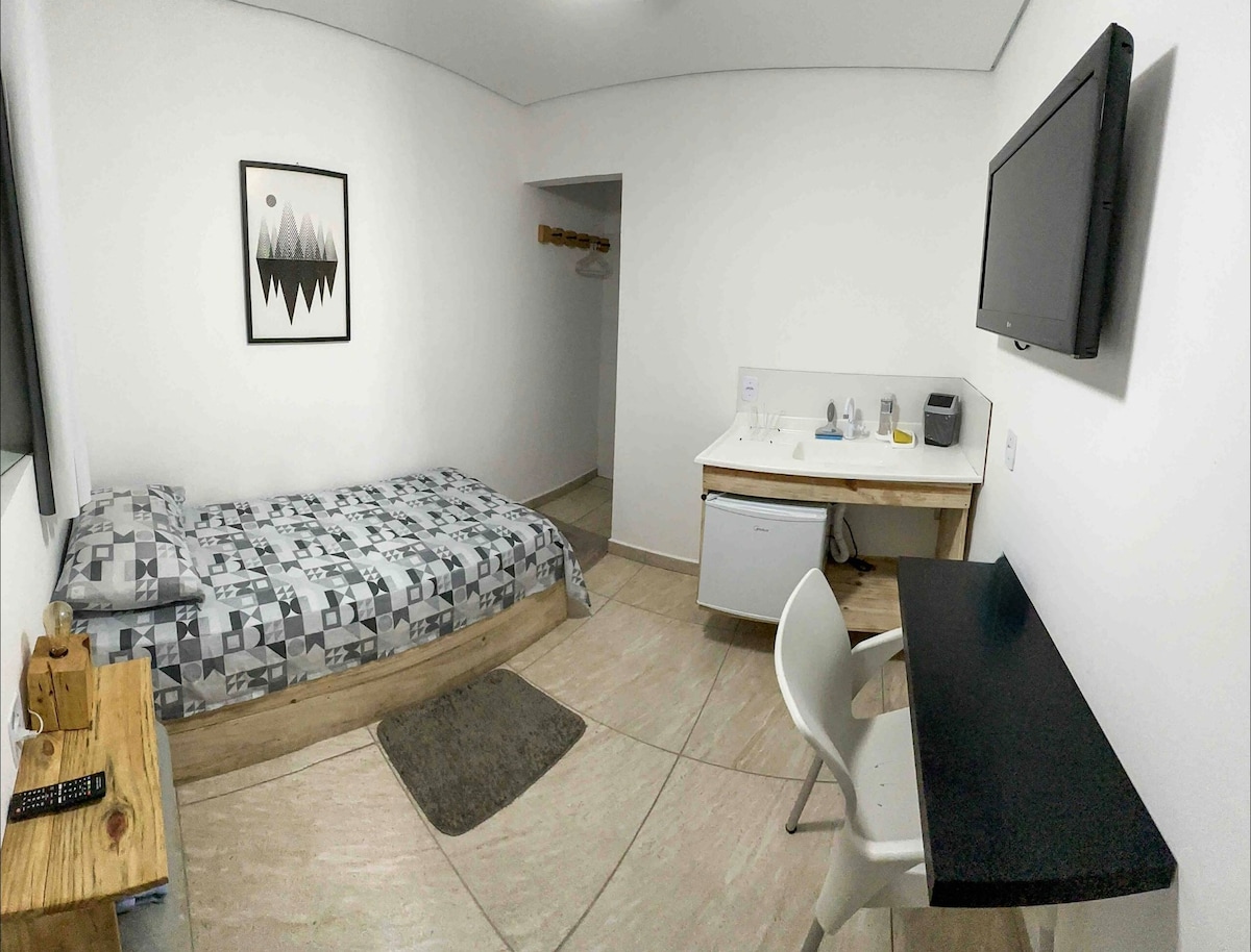 Լրիվ կիտետ ՝ օդորակիչով, շատ հարմարավետ ։ BOS - ին, PUC - ին և այլ հիվանդանոցներին, ավտոկայանին, քաղաքի կենտրոնին, ավտոբուսային տերմինալներին, առևտրի կենտրոններին, կենդանաբանական այգուն և այլն: Այն ունի անվճար ինտերնետ, Սմարթ հեռուստացույց ՝ հոդավորված հենարանով, հիմնական պարագաներով հագեցած խոհանոց, էլեկտրական սալօջախ 2 բերան, պլանավորված կահույք ՝ ամեն ինչ հյուրի առավելագույն հարմարավետության համար ։ Տրամադրվում է անկողնային և լոգարանի սպիտակեղեն ։ 15 օրից ավելի ամրագրելու համար թողնում ենք անկողնային պարագաների և սրբիչների 1 հավաքածու ։ Kitnet - ը ավտոտնակ չունի: