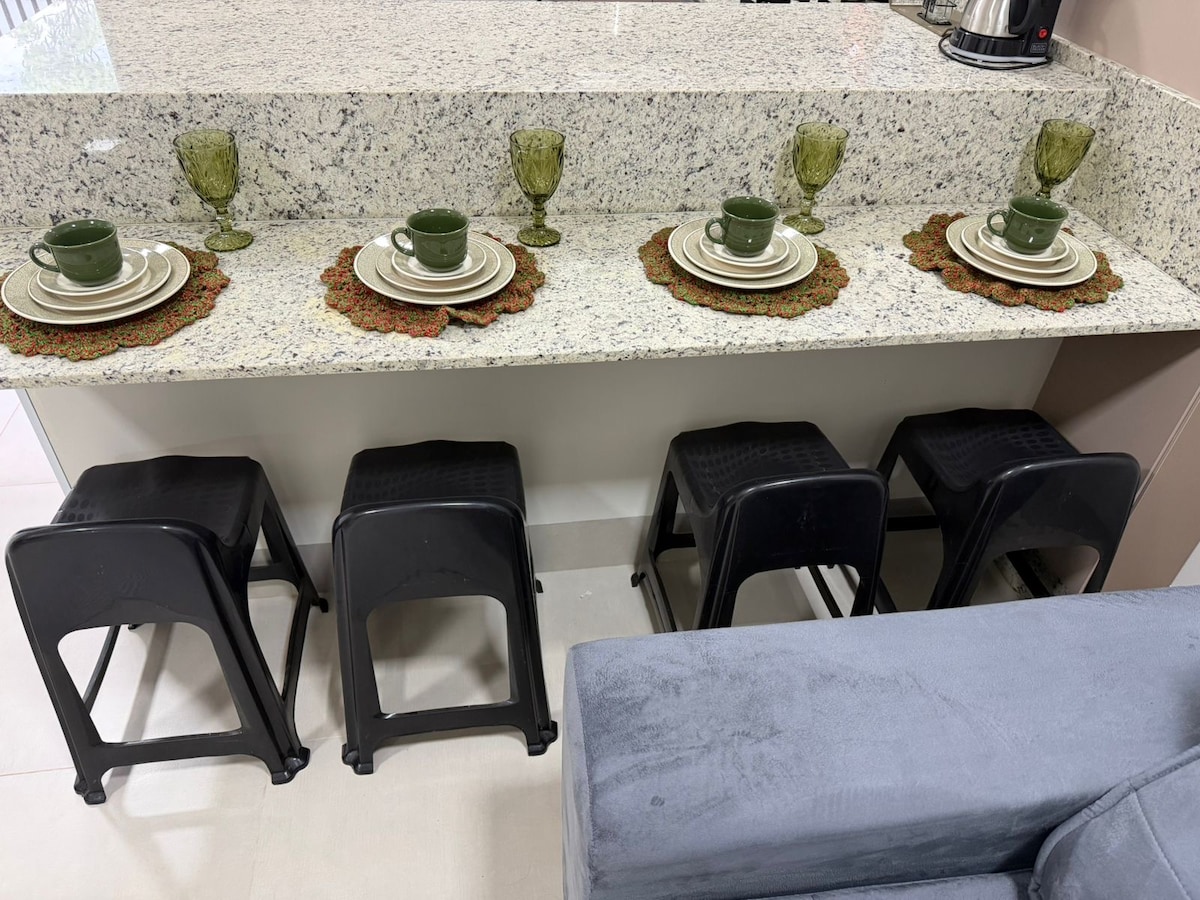 O espaço conta com sala e cozinha conjugadas, equipadas com fogão, geladeira, pia, mesa com 4 cadeiras e utensílios básicos. Quarto suíte com cama de casal, ar condicionado e televisão. Vaga de garagem disponível Localizada em bairro residencial tranquilo, com fácil acesso a supermercados e principais vias da cidade.