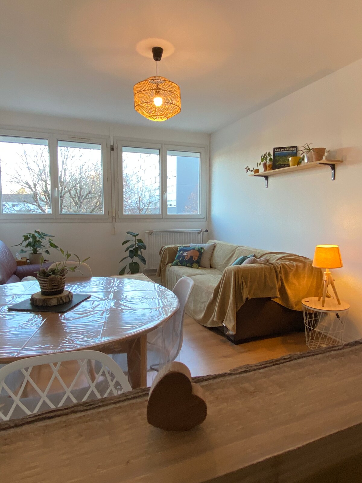 Հմայիչ պայծառ վերանորոգված բնակարան բակի հետնամասում գտնվող տան 1 - ին հարկում ՝ առանց ներսում ԾԽԵԼՈՒ: 24 մ2 մակերեսով առաջին հարկի հյուրասենյակ ՝ լիովին կահավորված խոհանոցով և լոգասենյակով, վերևում ՝ 25 մ2 մակերեսով ձեղնահարկով ննջասենյակ, որտեղից բացվում են լեռների տեսարանները վելյուքսով և 1 անվճար կայանատեղ մեր բակում ՝ առանց փողոցի տեսարանով (3 - րդ տեղ բակում) Tarbes Town Hall at 2km 500, Caminadour 500m, store approx. 1km Մենք ապրում ենք հարևանությամբ և ձեր տրամադրության տակ ՝ ձեր ակնկալիքներն արդարացնելու համար