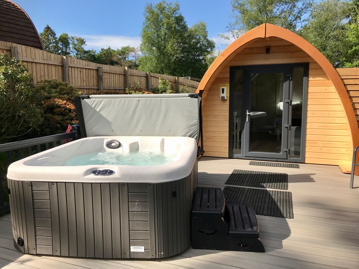 The Galloway Luxury Lodge Pod with 2 person electric hot tub is nestled amongst the Carrick Hills in South Ayrshire, South West Scotland. Features :- En-suite shower, sink and WC Fixed double bed Bed linen and towels (2 per person) Large sofa bed Kitchenette with fridge, microwave, kettle, toaster and sink Cutlery and crockery Dining table and chairs Flat screen TV/DVD Electric sockets with USB charging points Sub zero insulation and under floor heating so they will be warm and cosy