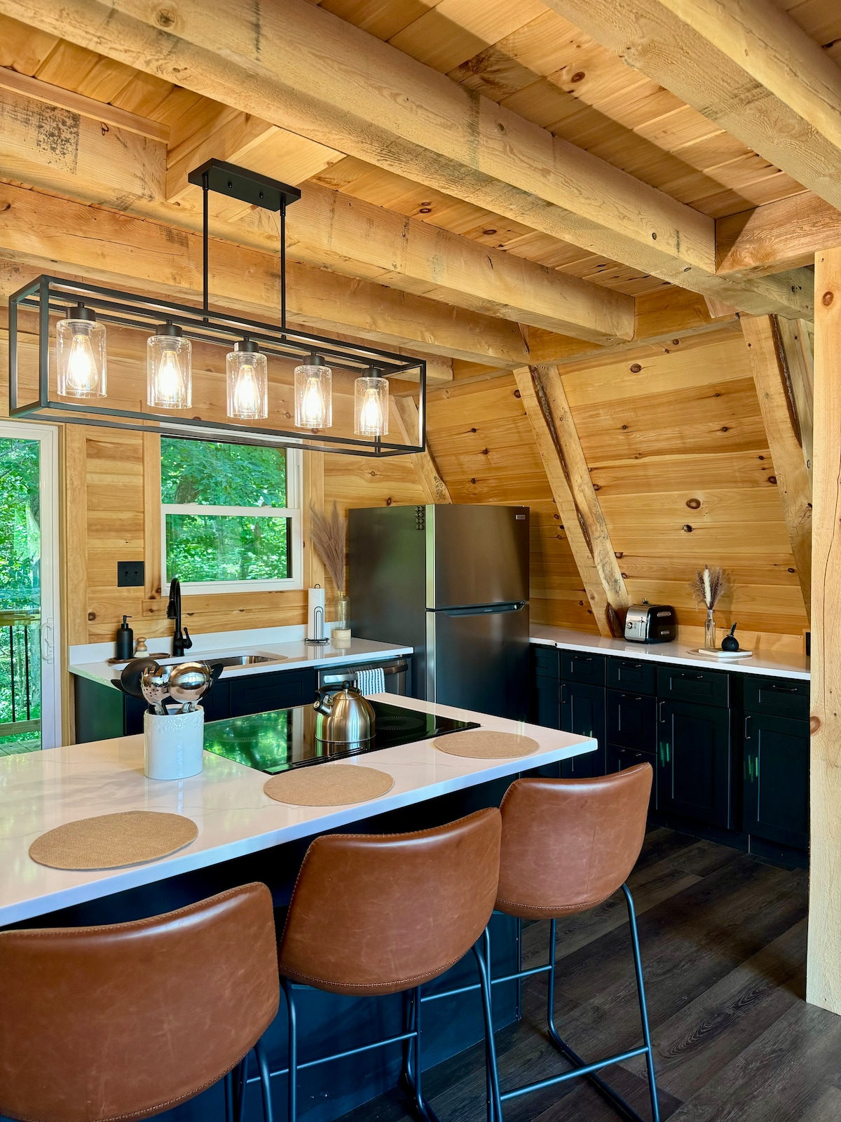 Welcome to Fox Ridge, a brand-new modern A-frame retreat nestled in the picturesque heart of Hocking Hills! Just a short 15-minute drive from Old Man's Cave and all the area's attractions, Fox Ridge offers the perfect blend of proximity and seclusion. Step inside to experience the warmth of our open design, where modern aesthetics meet cabin coziness. Whether you're an outdoor enthusiast ready to explore Hocking Hills or seeking a peaceful retreat to recharge, Fox Ridge is your ideal getaway.