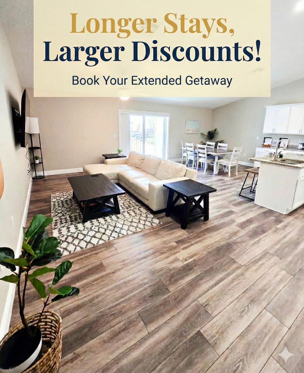 Just a 10-minute drive to the beach, this modern two-level townhome is perfect for your Daytona getaway. Featuring 2 bedrooms and 1.5 baths, it offers stylish comfort and a prime location near Daytona Beach, the Speedway, universities, shopping, and dining. Enjoy a 55” flat-screen TV, private outdoor grill, king memory-foam bed, two twin beds, and a queen sleeper sofa. Ideal for families, racing fans, bikers, and longer stays.