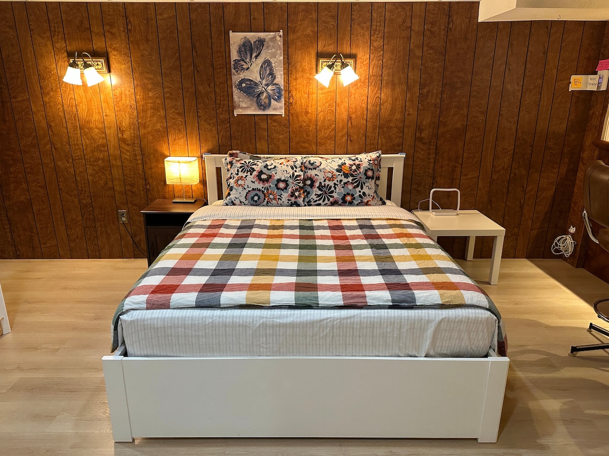 Այս առանձնատունը կցված է առանձին մուտքով և պատշգամբով մասնավոր տան։ Գտնվում է լճի ափին, որտեղ խորհուրդ է տրվում լողալ, թիավարել և հանգստանալ լճի դիմացի նավահանգստում ։ Մեկ ննջասենյակ՝ 193×203 սմ մահճակալով և առանձին լոգասենյակով, խոհանոցային տարածք՝ կղզով, գրասեղանով և հյուրասենյակ՝ բուխարիով։ Քաշեք բազմոցը թույլ է տալիս ունենալ երկրորդ քնելու տարածք (առանց շերտավարագույրների, եթե օգտագործում եք քաշքշուկ )։ Տախտակամածը կահավորված է կահույքով և խորովածի սարքով։ Ձեզ համար հասանելի են ջակուզի և սերֆինգի տախտակներ։ Կայանատեղի մեկ մեքենայի համար։ Համատեղ բակ։