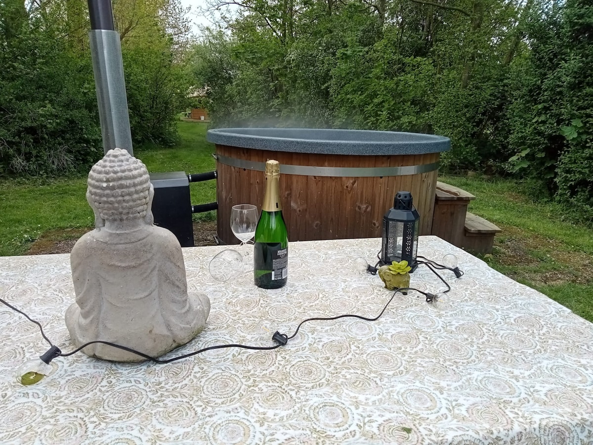 Geniet van de comfort van een hotelkamer maar dan midden in het groen! Ingericht met een koelkast, eet en drinkgerei, elektrische kachel, elektrische deken, veranda met loungeset, tripod barbecue en een groot houten tweepersoonsbed met fijne matrassen en opgemaakt met hotellinnen. De gloednieuwe ruime buitenkeuken met vier gasbarbecues en 4 kookpitten staat tot je beschikking! Ruime en schone douches en toiletten! De houtgestookte hottub kun je als privé arrangement bijboeken, met een meerprijs!