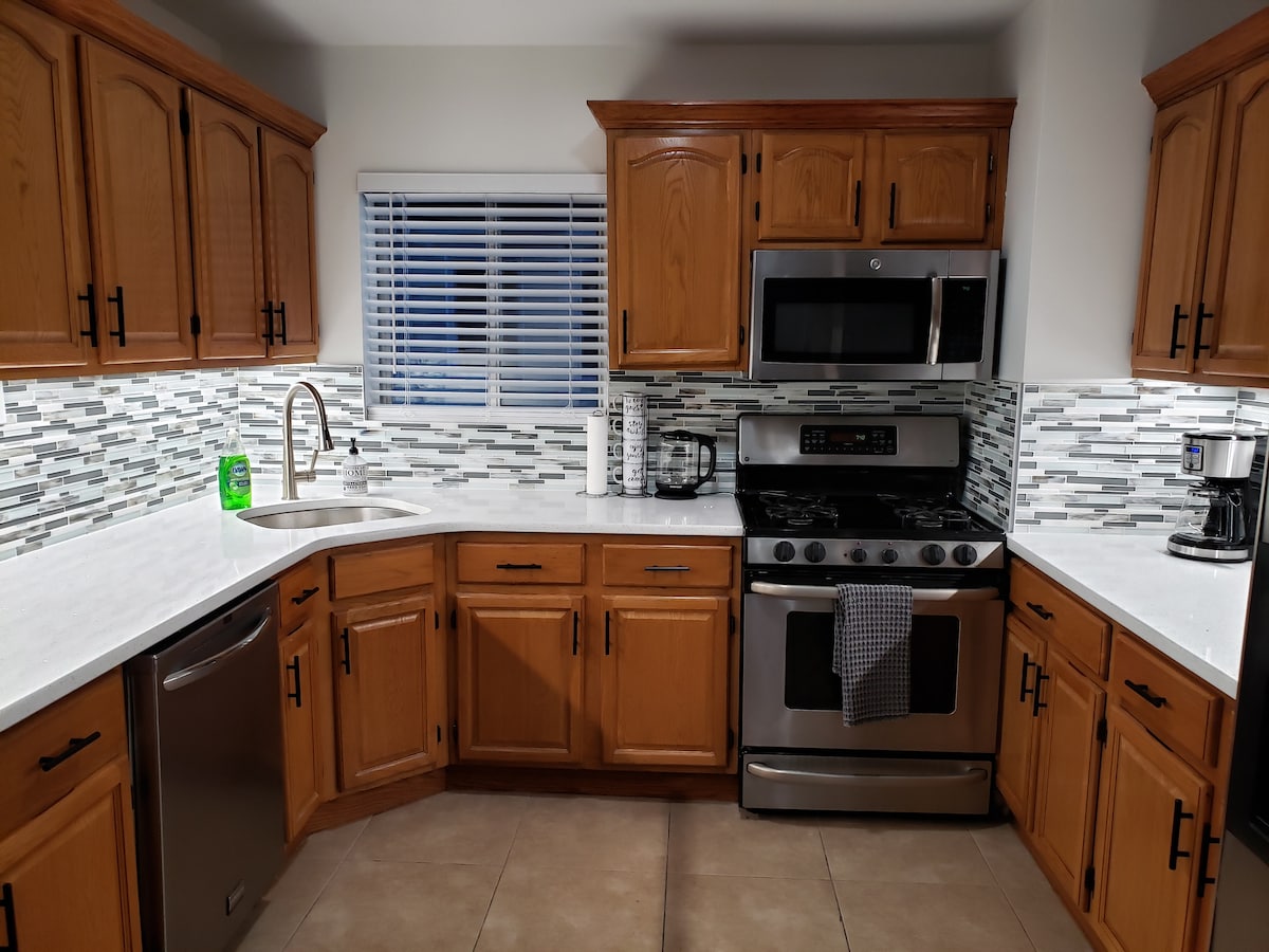 Lower level unit with private entrance and parking, **active driveway** in a shared home. Thoughtfully put together for a cozy feel and a tranquil spa-like experience. This room has one reclinable queen sized bed, private bathroom and access to a private and fully fenced backyard 24 hours of the day, perfect for couples looking for a quiet romantic getaway! Please read our neighborhood’s and property’s description and *other details to note* for very important info you don’t wanna miss.