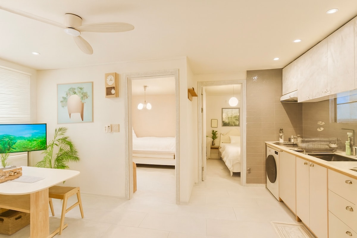 Staydarangshi 501 - ը նոր կացարան է Բիյարիմի մոտակայքում ։ Այն գտնվում է մեքենայով 10 րոպե հեռավորության վրա Sehwa - ից, Pyeongdae - ից, Songdang - ից և այլն: (Հարմարությունների խանութը մեկ րոպե հեռավորության վրա է )։ Այն բաղկացած է հյուրասենյակից, խոհանոցից, 2 ննջասենյակից (3 մահճակալ), 2 լոգասենյակից և բացօթյա մանղալից, Ամրագրումները կարող են կատարվել մինչև 5 հոգու համար ։ Մենք ոչ միայն կհոգանք մեր տանը ցուցադրված ինտերիերի մասին ։ Ես այն մաքուր կպահեմ և պատրաստ կլինեմ գնալու այնտեղ, որտեղ դուք չեք կարող տեսնել այն ։ Ամենից առաջ, ես կարծում եմ, որ մաքրությունը հիմնական է և ամենակարևորը ։ Հուսով եմ ՝ ընտանիքի/ընկերների հետ հարմարավետ հանգիստ կունենաք մաքուր տարածքում:)