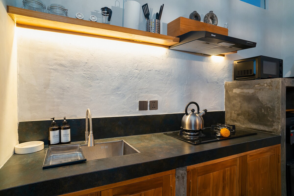 1 ննջասենյակով լոֆթ ՝ առանձին մասնավոր աշխատանքային տարածքով ։ Փախեք դեպի մեր եզակի Ուլուվատու լոֆթը, որտեղ փայտի ավանդական ճարտարապետությունը համապատասխանում է ժամանակակից արդյունաբերական դիզայնին: Բնական լույսի ներքո լողացող այս բացօթյա ստուդիան ձեր կատարյալ ապաստարանն է: Այն ունի հատուկ գրասենյակային տարածք ՝ կենտրոնանալու համար, լիովին կահավորված խոհանոց, ննջասենյակի հանգիստ տարածք և ընդարձակ լոգասենյակ ։ Սուլուբան լողափի, տեղական խանութների և ռեստորանների աշխույժ էներգիայից ընդամենը մի քանի քայլ հեռավորության վրա ։ Լիովին կահավորված է հարմարավետ և ոգեշնչող այցի համար ։