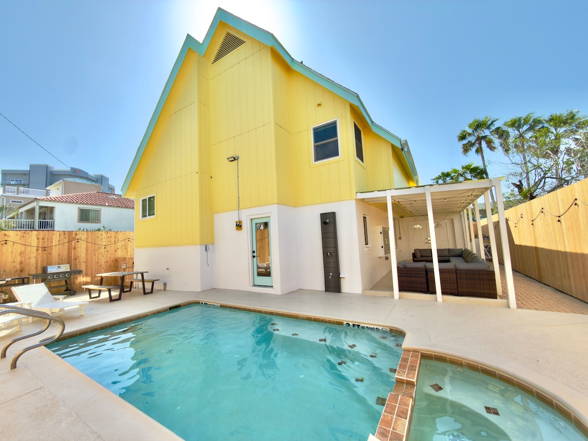 Բարի գալուստ ZULA SIESTA՝ Տեխաս նահանգի Հարավային Պադրե կղզում գտնվող մեր հիասքանչ հանգստյան տուն։ 2 րոպե քայլելու հեռավորության վրա գեղեցիկ լողափից, կարող է քնել մինչև 16 անձ 4 ննջասենյակում (տես ամբողջական կազմը ստորև), գեղեցիկ մասնավոր (ըստ ցանկության՝ ջեռուցվող) մեծ լողավազան և ջակուզի ամբողջությամբ ցանկապատված բակում։ Արագ WIFI, լիովին համալրված խոհանոց։ Հասցե՝ 112 E Mesquite St, South Padre Island Texas 78597 Տնային կենդանիներ թույլատրվում են լրացուցիչ վճարի դիմաց, 25 տարեկանից ցածր անձանց համար պահանջվում է լրացուցիչ երաշխիքային ավանդ։ Լողավազանի և սպայի ջեռուցում ՝ ըստ ցանկության ։ Անվճար 2 - րդ մակարդակի էլեկտրամոբիլի լիցքավորիչ Տես ստորև բերված տեղեկությունները