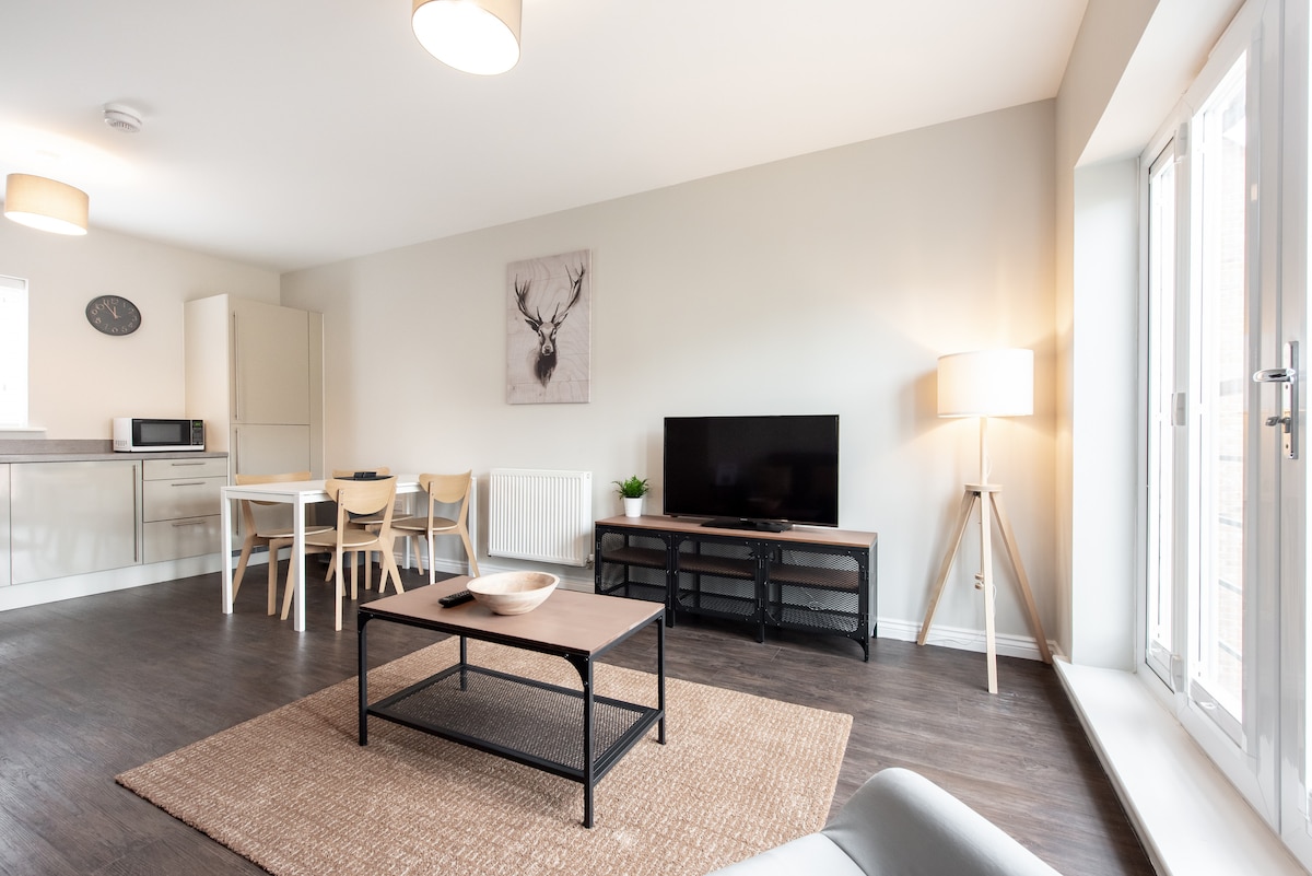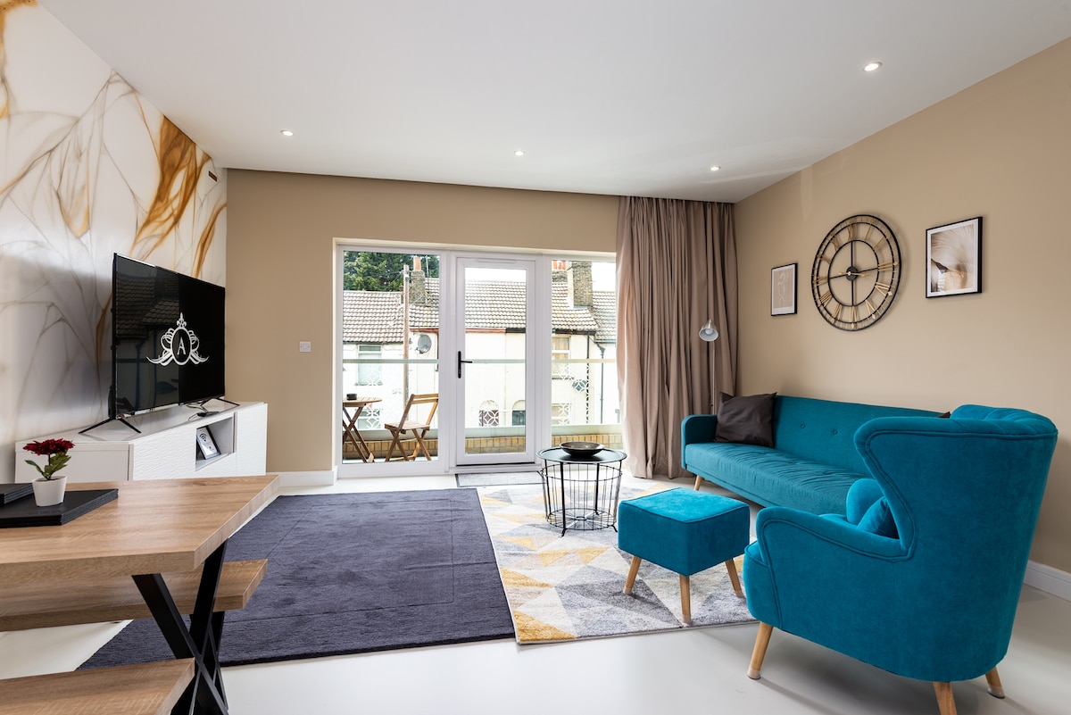 Վայելեք շքեղ փորձառություն խաղաղ կենտրոնացված սպասարկվող բնակարանում ։ Որն ընդամենը 2 րոպե քայլում է Dartford երկաթուղային կայարանից եւ տեղական քաղաքի կենտրոնից, սննդի եւ բարձր փողոցային խանութներով, որոնք բոլորը քայլում են հեռավորության վրա ձեր հարմարության համար: Մենք նաև ունենք կայանատեղի ձեր մեքենայի համար: Բացի այդ, հյուրասենյակում և ննջասենյակում կարող եք վայելել անվճար WiFi ՝ սմարթ Tvs - ով ։ Ինչպես նաև գլխավոր ննջասենյակից դուրս գտնվող en - Suite - ը և հիմնական լոգասենյակը, որը ստիպում է ձեզ զգալ ինչպես տանը: