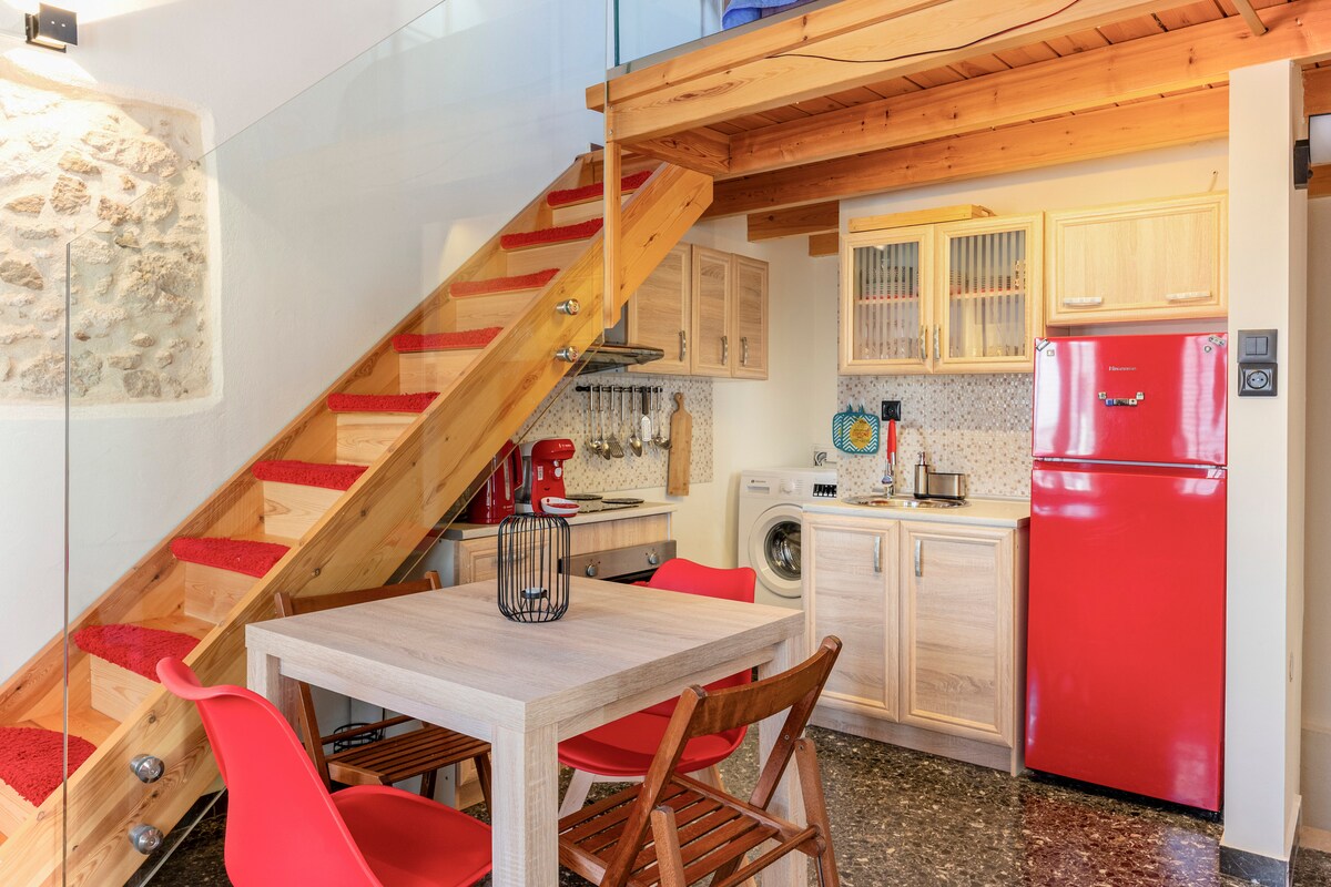 A fully equipped, renovated apartment in the heart of the city of Rethymno, created with care, attention to detail and love for the retro style and for the games of another era (such as Arcade and Atari) so as not to forget the child inside us . Movie lovers will appreciate the presence of a projector and romantics the electronic fireplace. Just a ten minute walk from the picturesque old town of Rethymno which is worth exploring.