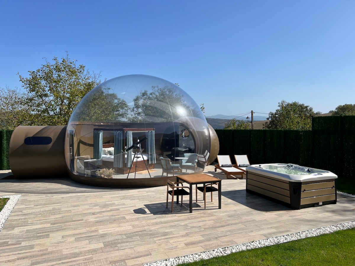Ուզո ՞ ւմ եք ինտեգրվել վայրի բնության գրկում, ինչպես միշտ եղել եք ։ Մնացեք այս յուրահատուկ կացարանում և վայելեք բնության ձայները ՝ միաժամանակ զարկելով ։ Մենք միակ թափանցիկ գմբեթն ենք, որը կարող եք վայելել ձեր գործընկերոջ հետ Սիերա դե Մադրիդում ՝ քաղաքից ընդամենը 40 կմ հեռավորության վրա, և էկոհամակարգ, որը շրջապատում է այն անմոռանալի տպավորություններ պարգևելու համար: