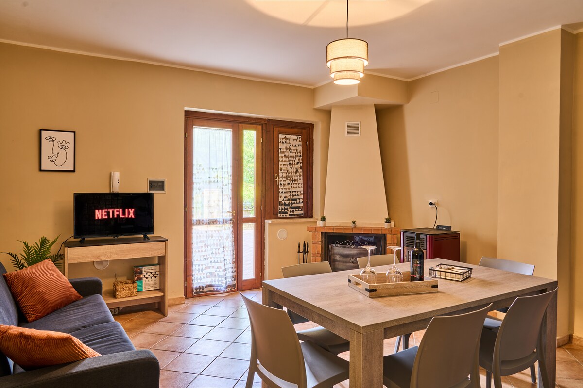 Քարից և փայտից կառուցված առանձնատուն ՝ մեծ հյուրասենյակով, որը գտնվում է լեռնային տարածքում ՝ Տիրենյան ափից ընդամենը 20 կմ, իսկ ափամերձ հատվածից ՝ 30 կմ հեռավորության վրա ։ Տունը գտնվում է քաղաքի կենտրոնից 2 կմ հեռավորության վրա, որտեղ առկա են բոլոր հիմնական ծառայությունները, 12 կմ հեռավորության վրա գտնվում է «Դոս Մարի» առևտրի կենտրոնը: Լամեզիա Տերմե օդանավակայանը և Կենտրոնական կայարանը ընդամենը 20 կմ հեռավորության վրա են: Տարածքը հարմար է ընտանիքների կամ խմբերի համար ՝ կանաչապատ տարածքներով շրջապատված հանգստի համար ։