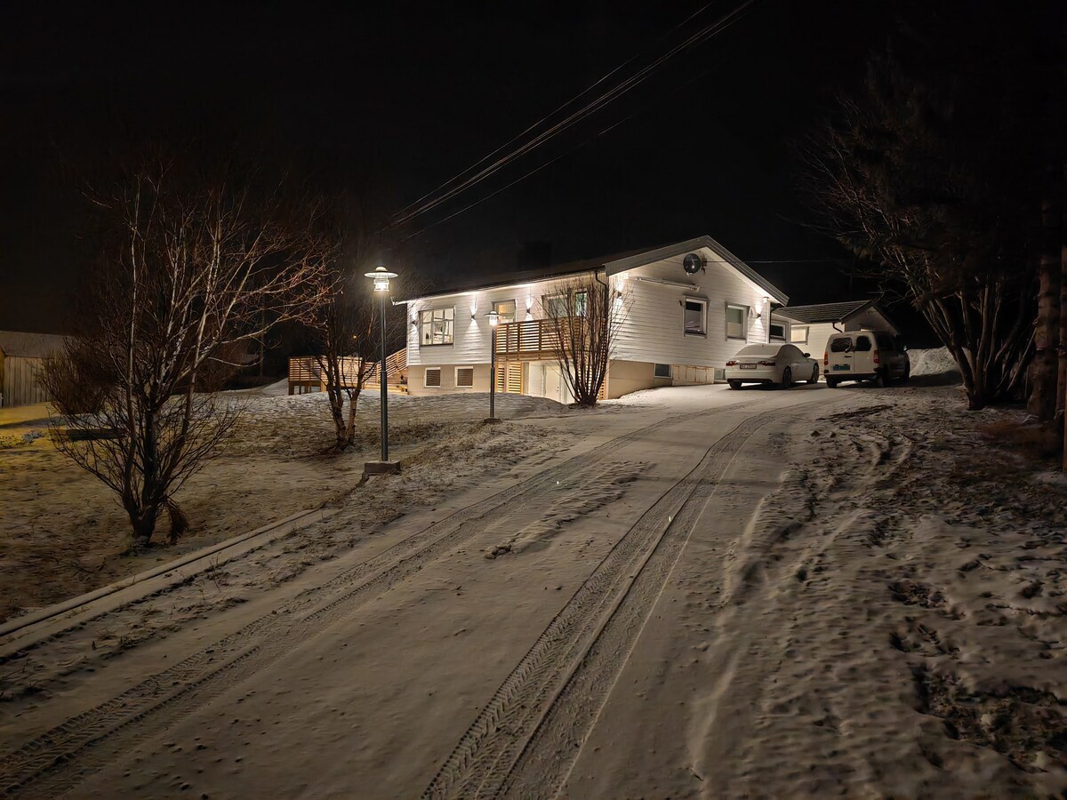 This is our brand new holiday house. Near the ocean in a beautiful quiet place, amazing view and nature around. You can see the northern lights right outside. Its only fifteen minuts by car to Skjervøy where you can go on a whale- and orcas safari. Big mountain for hiking and skiing around. Driveable to the front door. Big open kithen/livingroom. 2 bedrom (3-for extra). Large bathroom with sauna, large tub and shower. Apple tv, wifi and built in AC/heatpump. Max guests 7 persons.