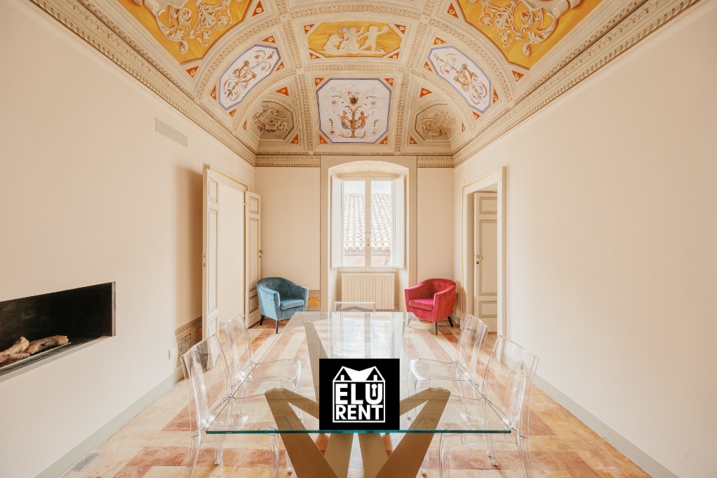 Immerse yourself in the timeless charm of the Andromeda House, a small jewel in the heart of Spoleto where the ceilings, adorned with Renaissance frescos, tell the story of the Ethiopian princess tied to the rocks and saved by Perseus. La Dimora welcomes its guests by providing them with a living room with a sofa bed, a dining area with an equipped kitchen and fireplace, a sleeping area asided with frescos from the Italian nobles of the 18th century, a smartworking and a “dress & beauty” spaces