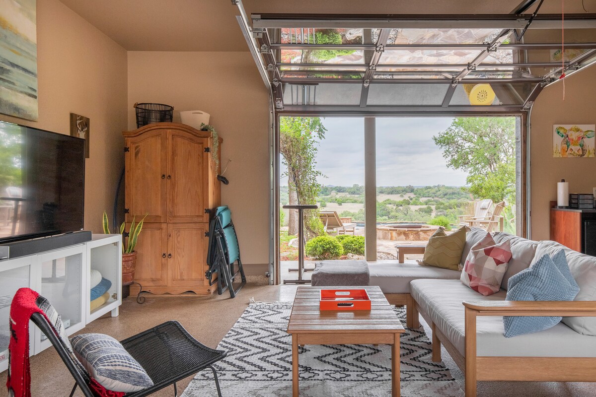 Set on a cliff above the Guadalupe River this private guesthouse with sweeping vistas is your Hill Country getaway. This home was designed for guests rest, relaxation and fun. Conveniently located near shopping, dining and outdoor activities although you may never want to leave the peace and quiet. Set on a cliff above the Guadalupe River this private guesthouse with sweeping vistas is your Hill Country getaway. This home was designed for guests rest, relaxation and fun. Conveniently located near shopping, dining and outdoor activities although you may never want to leave the peace and quiet. Take in the incredible views of the river, ranch and Hill Country from the custom pool and spa. One of a kind Texas views in a truly unique home make this an unforgettable Hill Country destination. See this house in the just released book "Spectacular Weekend Getaways of Texas" by Jolie Berry of Signature Boutique Books. Cliff Haven on the Guadalupe. In the middle of nowhere and near everything sums up this home. Very close to local shopping and dining. This guest house is located on 2.5 acres over 65 feet away from the main house in a safe and quiet community in Spring Branch Texas. Use it as your launching pad to visit the Hill Country, New Braunfels and San Antonio or just stay and unwind. This home was designed and appointed for the absolute best stay. Relax in the pool, enjoy the spa, grill a steak and enjoy drinks next to the fire. - Private Pool and Spa - Private Courtyard with Stone Fire Pit and Outdoor Seating - Outdoor Grill - Fully Equipped Kitchen - "Texas Living Room" Air Conditioned Finished Garage with Full View Glass Door, Pool Table, Sofa, Dining Table and Chairs, 60" TV, Mini Fridge, Ice Maker and Full Bath - High Quality Bedding and Pillows W.O.R.D. Permit #L1442 Guests have complete access to the entire home. The pool and spa is also for the exclusive use of the guests. The house is a separate very private guest house of the main home 65 feet away from main home. I value my guests privacy but I'm always available to answer questions or fill you in on all the cool things to do around here. This home is in a very quiet neighborhood. It has a very country type feel with deer and other wildlife readily seen. Home is available by car only and there is no public transportation or Uber available. This home is located about 35 minutes from downtown San Antonio. There are many parks and river access areas near the house. It's a great place to bike and run with awesome hills and flats. Great local restaurants and bars nearby and within a short drive.