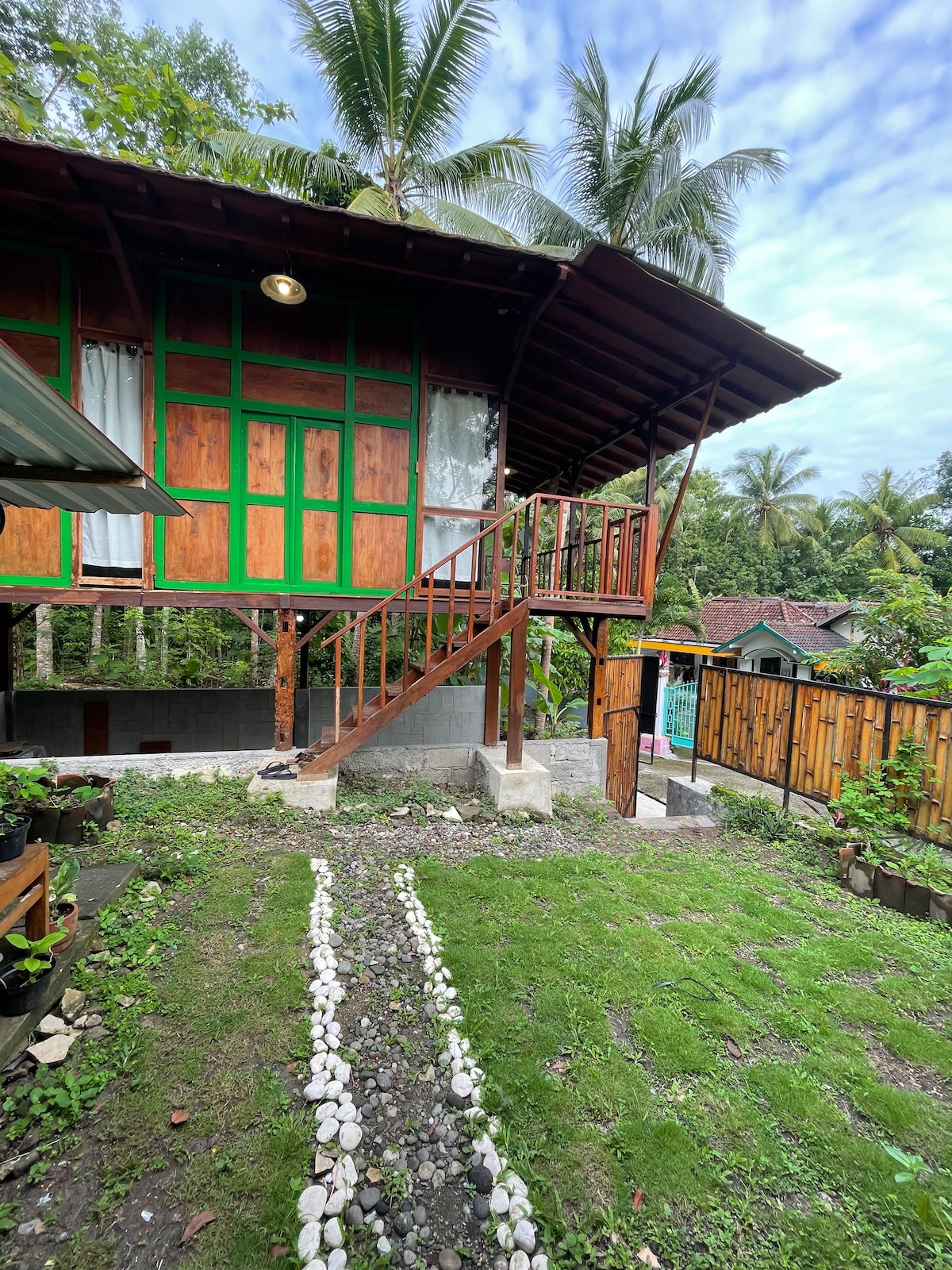Be Happy and Relax at this unique and tranquil Home. Breathtaking Views on our Green Valley and just a few steps away from Lotus Mio Restaurant. This cozy 2- story Forest Villa House offers a Private Pool. On the same level you find the Kitchen, Bathroom and cozy Living room connected with an outdoor tropical terrace. Upstairs is a airconditioned Sleeping Room . Good WIFI Everywhere. This Romantic Forest Home south of Yogyakarta is 1 hour from YIA Airport and easyt for visits to Borobudur .
