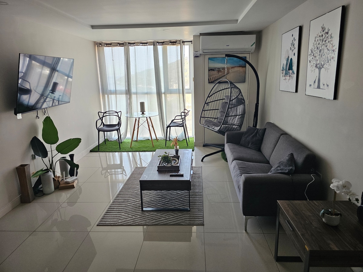 Relax with your family and friends at this beautiful luxury stay, Fully Air Conditioned. Unwind while having peace of mind at our gated residence with 24 hours security, where you will feel at home with our modern finishes and chic decor. This 2 bedroom 1 bathroom stay is equipped with all you need to get cozy, as all our amenities are up to date and inputted just for your comfort.