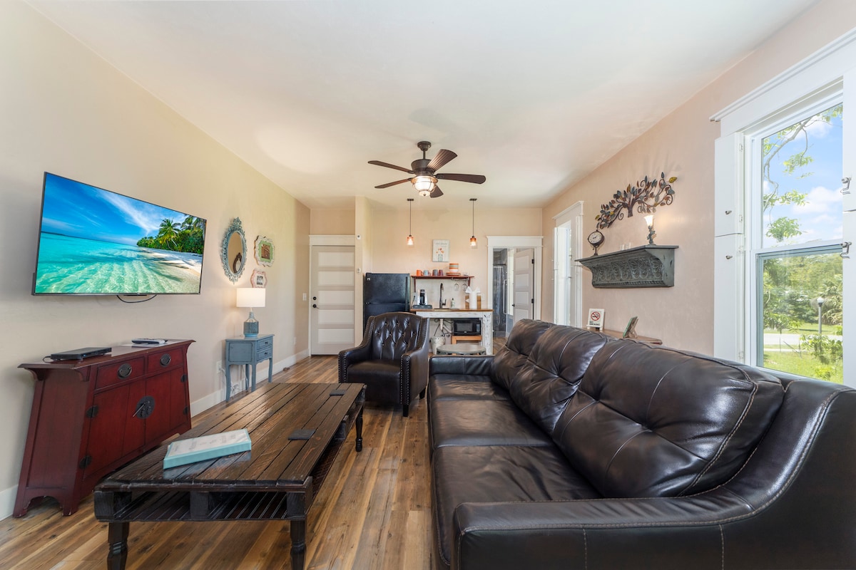 Riverwood Suites - ում սա պարզապես սենյակ չէ, այլ փորձառություն: Պատկերացրեք այն. մեքենայով վեր եք բարձրանում, գյուղական արտաքին տեսքը կարող է անակնկալի բերել ձեզ ։ Երբ մտնում եք ձեր առանձնաբաժին, նկատում եք լրիվ չափի սառնարանը և Կալիֆոռնիա Քինգ մահճակալը ։ Նախքան խոտին հարվածելը խոհանոցիկից մի բաժակ եք բռնում և շարժվում դեպի վերանդա ՝ միաժամանակ նայելով քաղաքի կենտրոնին ։ Առավոտը հաճելի է Keurig սրճեփ սարքի հետ: Դուք հանգստանում եք հետնաբակում, մինչ սպասում եք Simply Bella Aesthetics - ի ձեր սպա ծառայություններին: