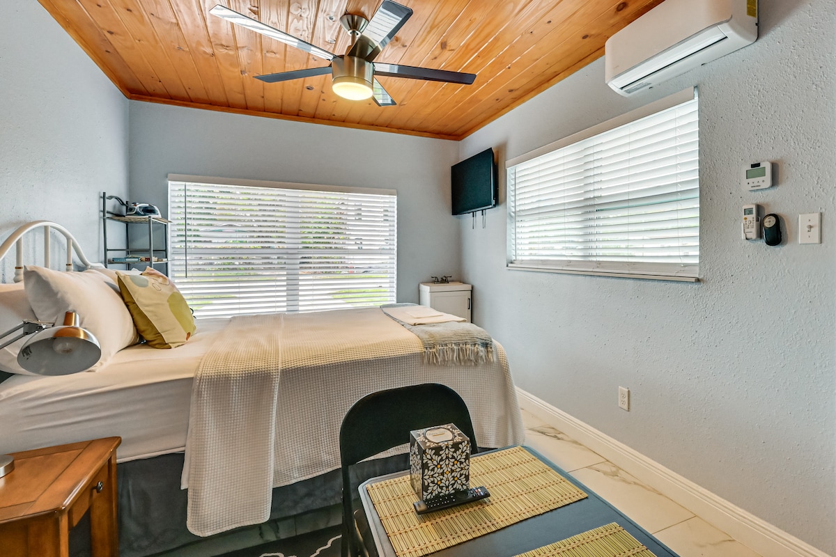 Welcome to Your South Tampa Bay Retreat! Make yourself at home in this bright, modern studio perfectly suited for a relaxing getaway or a productive work trip. Wake up to plenty of natural light, enjoy a cozy breakfast at the bistro table, or unwind with your favorite shows on the Smart TV. With a well-equipped kitchenette, full bathroom, in-unit laundry, and a comfortable king bed, this space has everything you need. Located in desirable South Tampa, you're close to the Tampa Postcard Mural, WestShore Plaza, Davis Islands Beach, and just under 3 miles from Raymond James Stadium and Steinbrenner Field— ideal for football and Yankee fans and event/concert-goers. Also, only 4.4 miles to downtown to Benchmark Arena (formerly Amalie) for Tampa Bay Lightning hockey or concert events. What You’ll Love: Comfort & Convenience: King bed, 65 inch Smart TV, marble accents, central A/C Handy Kitchenette: Cooking basics, microwave, toaster oven, hot plate, coffee maker, ice maker Extra Perks: Free WiFi, in-unit laundry, gated entry, ground-floor access EV Friendly: Tesla charger available Parking: Driveway parking for one vehicle Things to Know: - Step-free access - Owner lives on-site in a separate unit - Ring doorbell camera at the front entry (outdoor only) - No pets, smoking, parties, or events - Must be 25+ to book Enjoy modern comfort, a prime location, and all the essentials for a smooth stay in Tampa!
