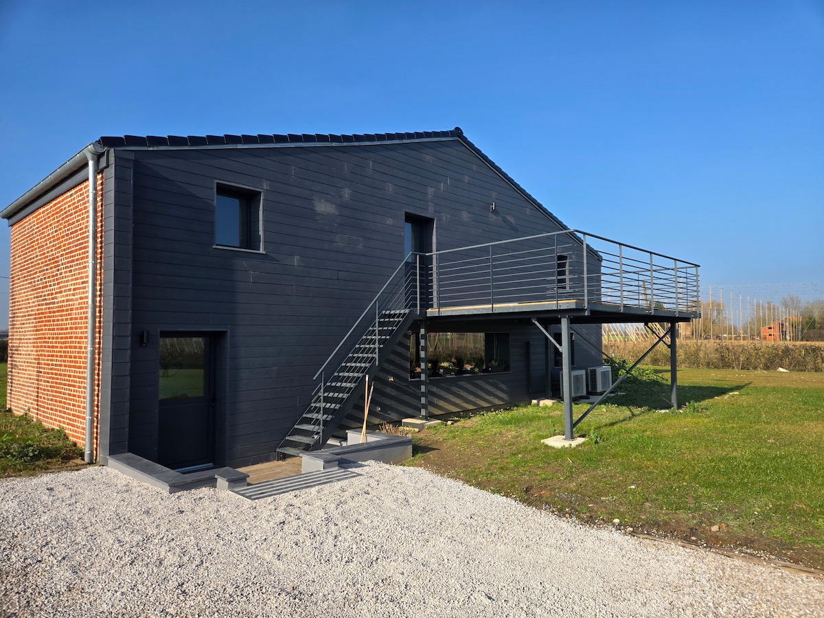 Հուսով ենք, որ շուտով կողջունենք ձեզ «La Maison Rouge» մեր նոր բնակարանում, որը գտնվում է մայրուղու և S NCF Lille/Dunkirk, երկաթուղային կայարանի և մայրուղու ելքի վրա գյուղի մոտ): - Անկախ բնակարան - Մեծ կտուր, գյուղական համայնապատկերային տեսարաններով - Փայտի այրման վառարան - Լիովին կահավորված խոհանոց + լվացքի մեքենա չորանոց - Անկողնային պարագաներ 180/200 շատ ուշադիր ընտրված է առավելագույն հարմարավետություն ապահովելու համար - Ուլտրա - արագ օպտիկամանրաթելային Wi - Fi, Apple և Orange Tv - Շատ խանութներ ոտքով