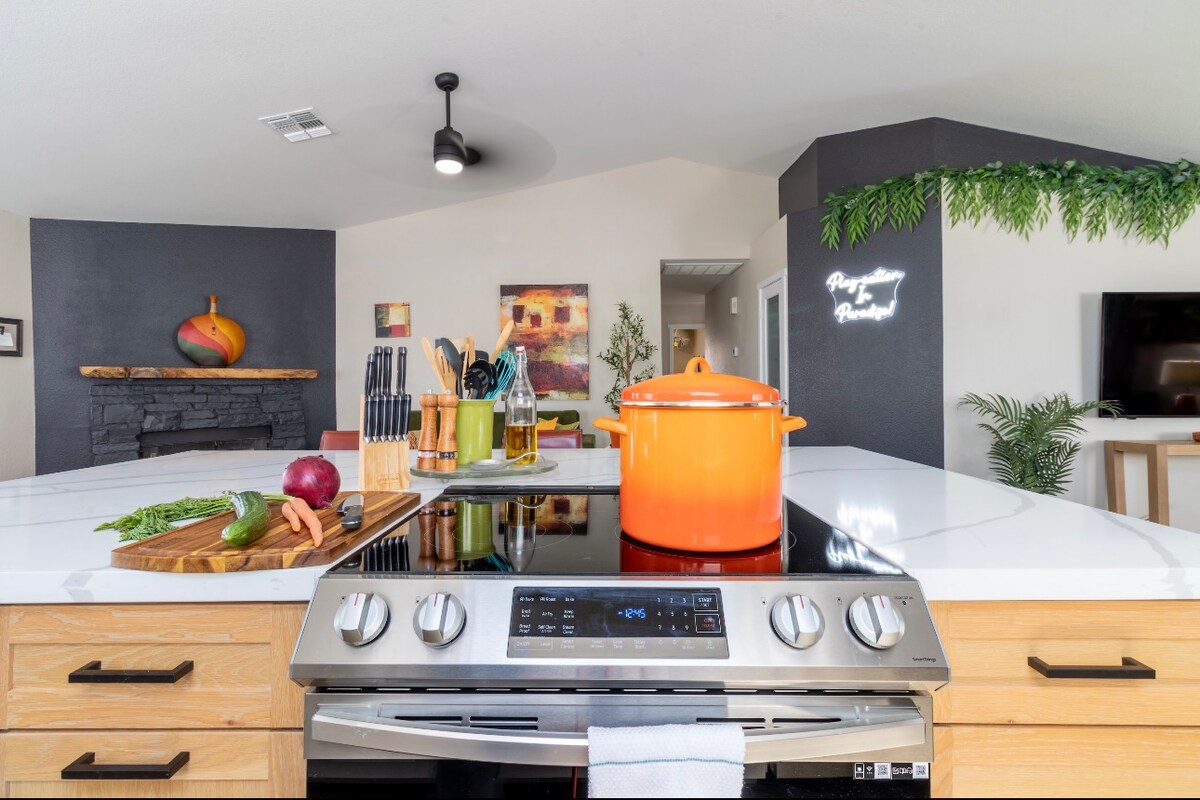 Բարի գալուստ ձեռագործ տուն անապատում ։ Կա մեծ բացօթյա տարածք ՝ ջեռուցվող լողավազանով, խորովածով և պրոպանե կրակի սեղանով ։ Լողավազանի ջեռուցումը ներառված է հոկտեմբեր - մայիս ամիսներին ձեր այցի արժեքի մեջ ։ Դուք կվայելեք ժամանցը լիովին կահավորված շեֆ - խոհարարի խոհանոցում ՝ թարմացված կենցաղային տեխնիկայով և ջեռոցում օդի տապակիչով ։ Հարմարավետ մահճակալները հիշողության փրփուր են, իսկ լոգասենյակները թարմացված են ։ Բաց թողեք խաղային օրվա կամ համերգի երթևեկությունը և ընտրեք հեշտ զբոսանք ։ Մենք գտնվում ենք «Սթեյթ Ֆարմ» մարզադաշտից 0,8 մղոն հեռավորության վրա ։