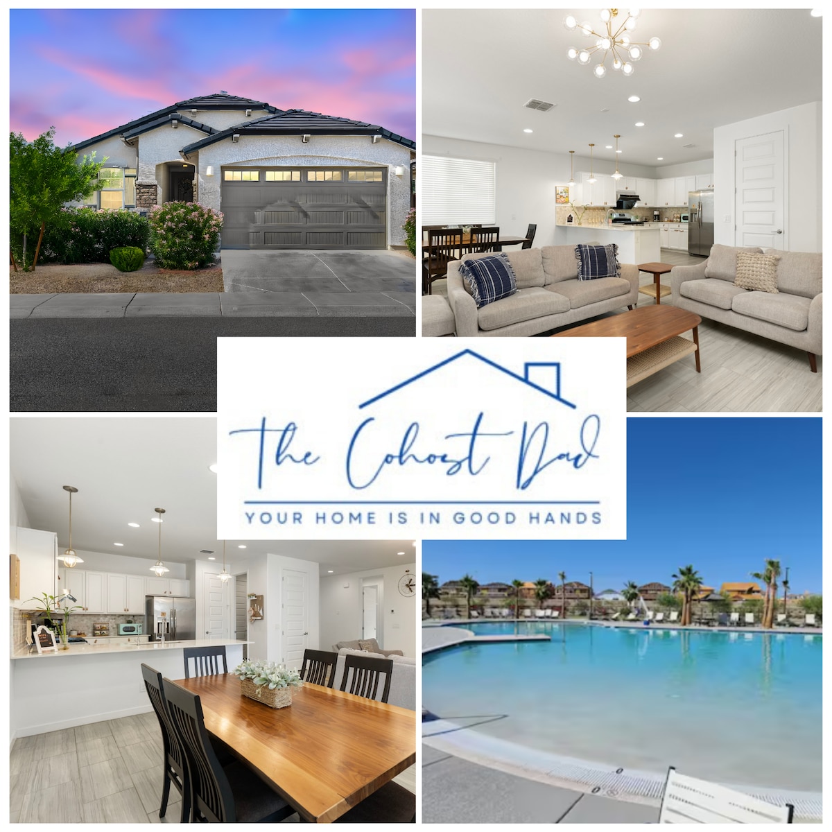 Family friendly Entertaining Home; Large covered patio with plenty of seating, fire table, Treager grill, 10ft private heated pool Oct-May (included). Fully stocked chefs kitchen- double ovens, gas cooktop. Comfy beds, smart TVs in all bdrm’s . Baby/kid items. A perfect location for your Arizona getaway. Only 0.8 miles from the State Farm Stadium, Desert Diamond, Westgate, restaurants and adventures avoid traffic walk to your event! Weekly/Monthly discounts. Essentials for your stay provided.
