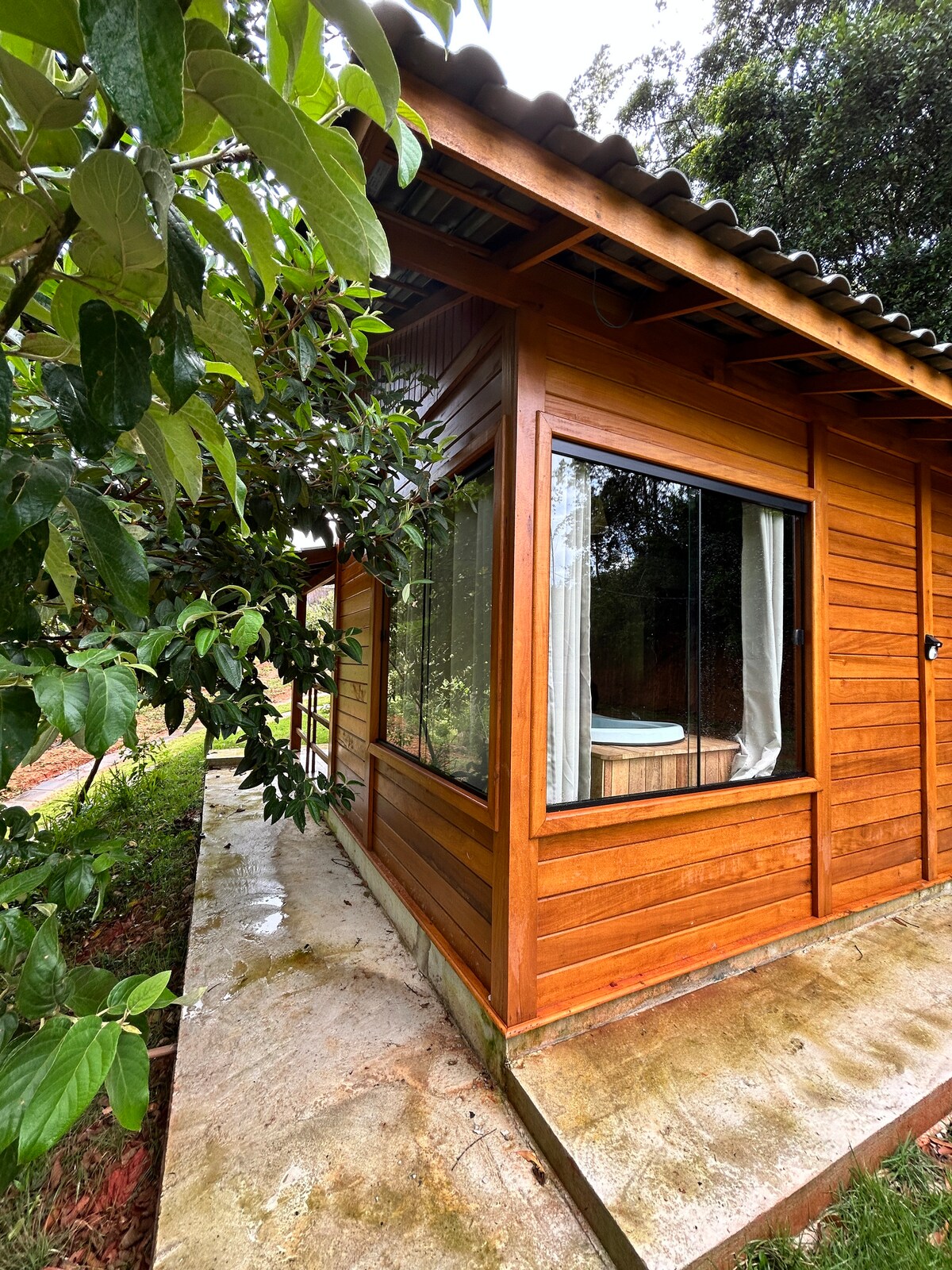 Chalé com banheira e cozinha