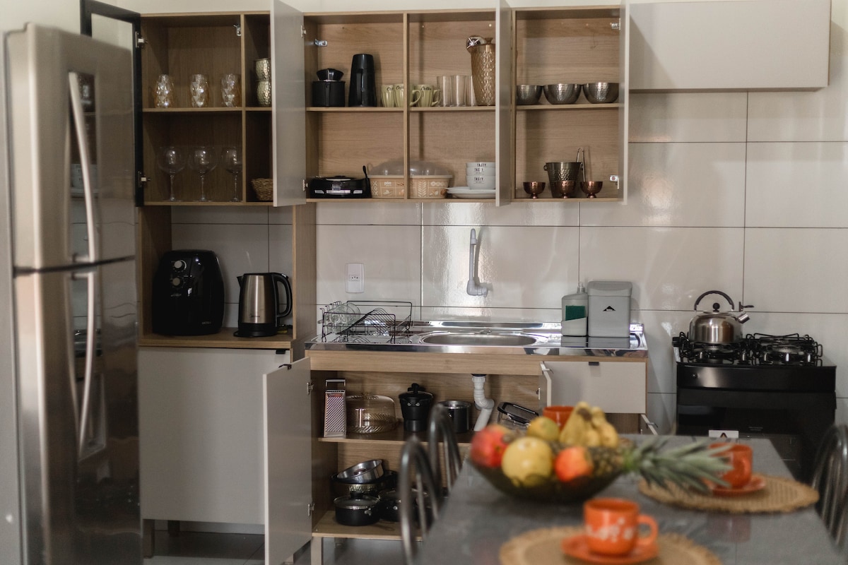 Օգտվեք գործնական տարածքից և ՛ բիզնես ուղևորների, և ՛ ուսանողների, և ՛ մրցույթի մասնակիցների, և ՛ Մաթո Գրոսսոյի գեղեցիկ վայրերը ։ Շենքը հեշտ հասանելի է Cbá - ի, քաղաքի կենտրոնում, համալսարաններում, դպրոցներից, ելքից մինչև քափադա: Տարածքն ունի չորս սենյակ, ննջասենյակ ՝ հեռուստացույցով և ներկառուցված պահարանով, հյուրասենյակ ՝ բազմոցով, խոհանոց ՝ լավ ճաշ պատրաստելու համար, լոգասենյակ և պատշգամբ ՝ քաղաքի գեղեցիկ տեսարանով ։