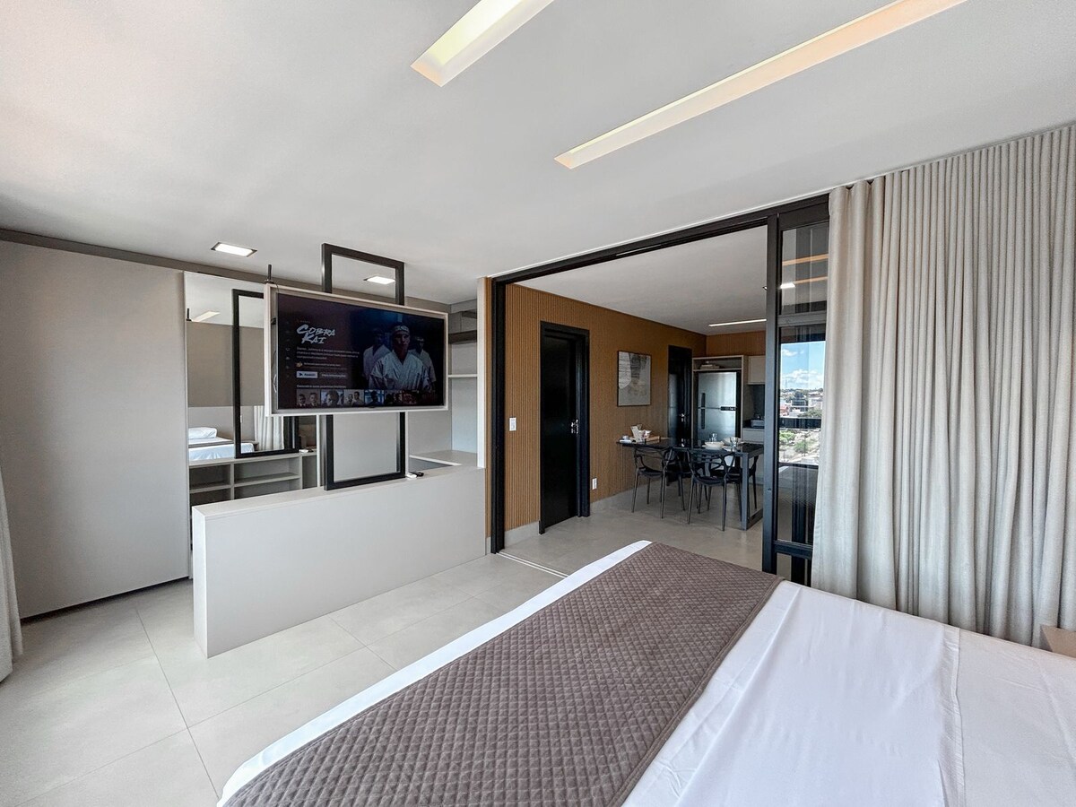 Estúdio com Churrasqueira, Cama King e Home Office