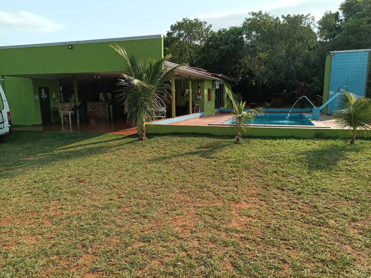 Relaxe com toda a família nesta chácara linda, tranquila e muito bem equipada para seu lazer. Casa com 2 suítes, ambas com cama de casal, ar condicionado e TV. Sala completa, varanda espaçosa com redes, cadeiras, mesa grande e area de churrasco com pia, armários e cervejeira vertical. Uma suíte com ar condicionado e tv, 1 cama king e 2 cama casal no fundo da cozinha gourmet, a cozinha toda planejada com banheiro dentro. Campo de futebol e rede de vôlei, piscina grande Possui cameras de segurança