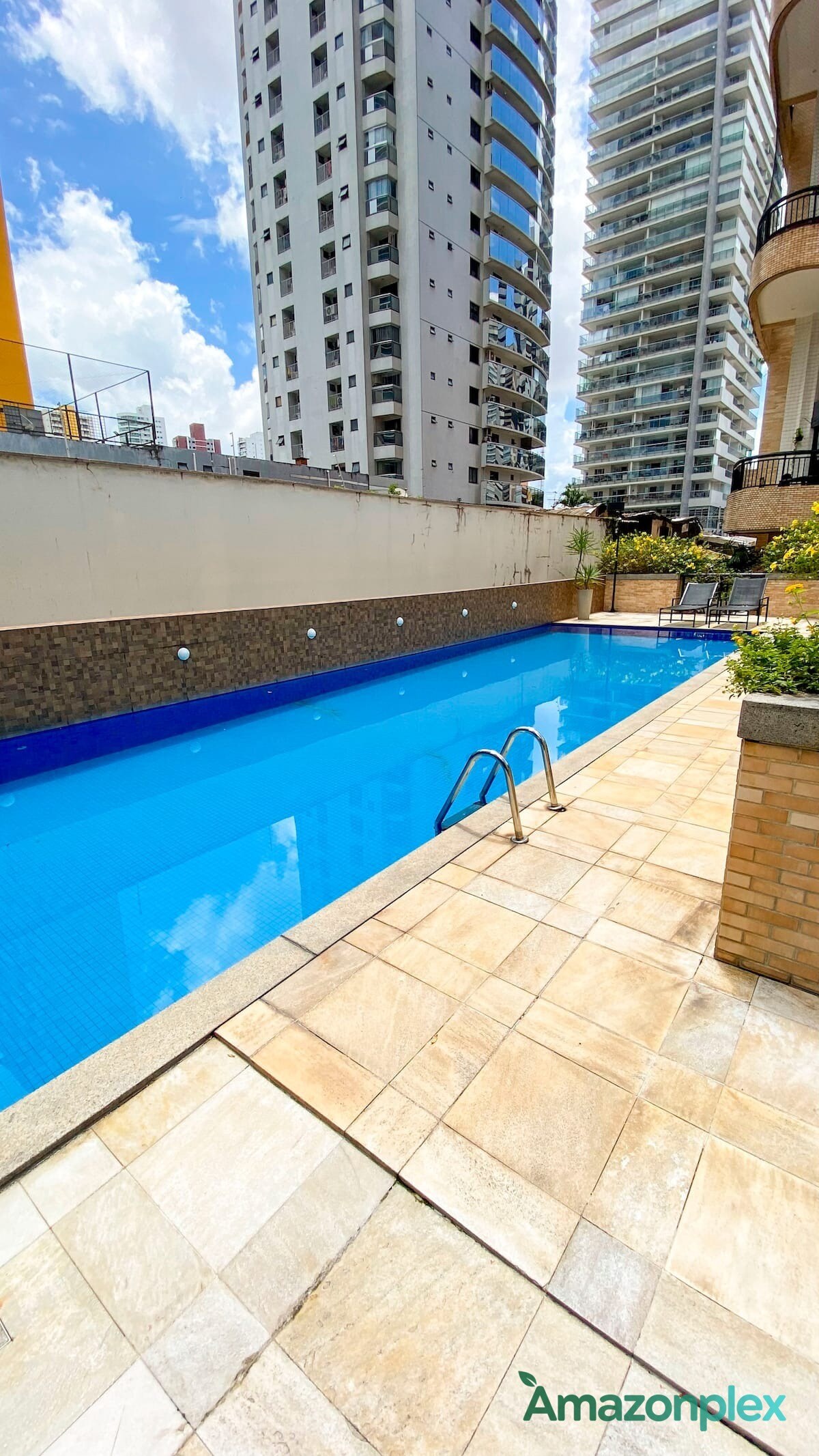 Apartamento completo! Próximo ao Hangar. Possui 3 suítes com ar condicionado, sala climatizada, e cozinha completa (fica atrás do painel ripado), tem capacidade para 6 pessoas e garagem para 2 carros. Com o máximo conforto e elegância para se desfrutar. O prédio possui área de lazer com piscina adulto e infantil, churrasqueira, jacuzzi, academia, quadra de squash climatizada, espaço kids e espaço de eventos. Prédio novo em área segura, próximo de mercado, farmácias e excelentes restaurantes.