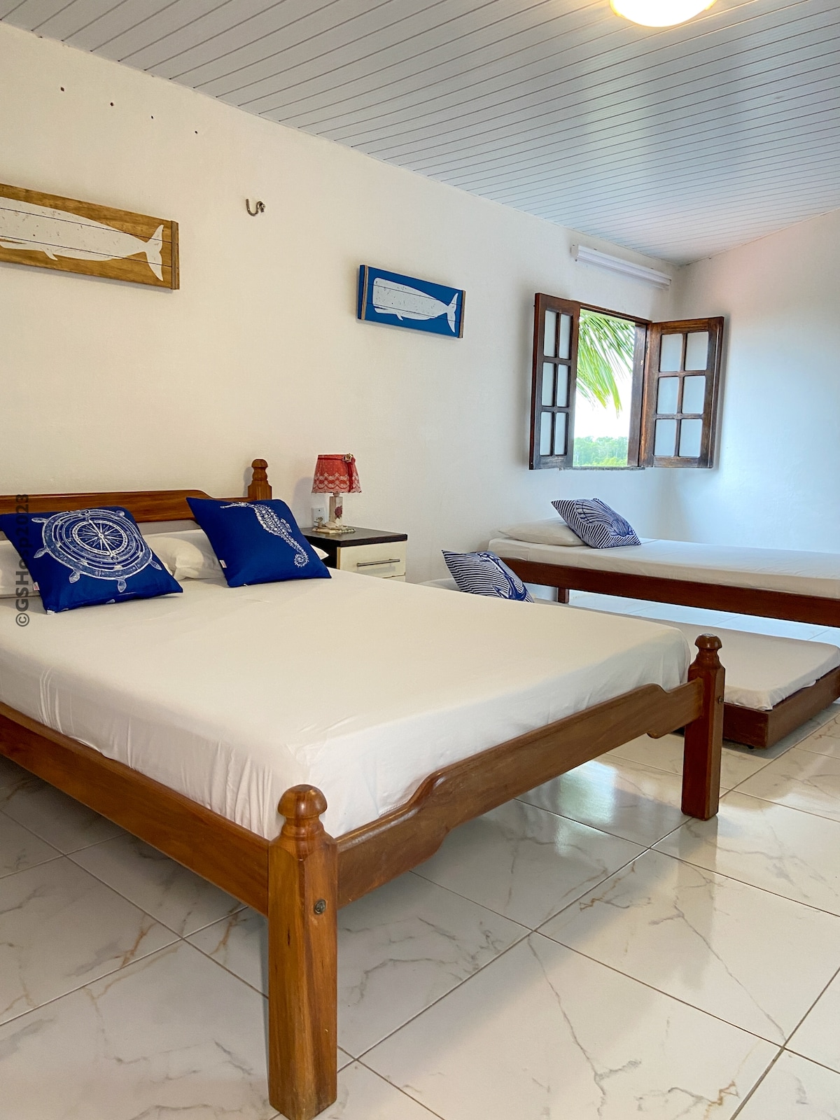 Somos a Pousada Casa da Praticagem. Nossa suite Leme oferece duas camas de solteiro, armário, espelho, ar-condicionado, wi-fi. As áreas comuns contam com uma linda piscina, varanda, lounge, deck super ventilados e de frente para o mar. Oferecemos estacionamento interno e um maravilhoso café da manhã incluso na diária. A vista para o mar é inesquecível. Estamos em frente à nova Orla de Salinópolis, com fácil acesso às praias da Ponta do Espadarte e Maçarico, próximo a restaurantes e bares.