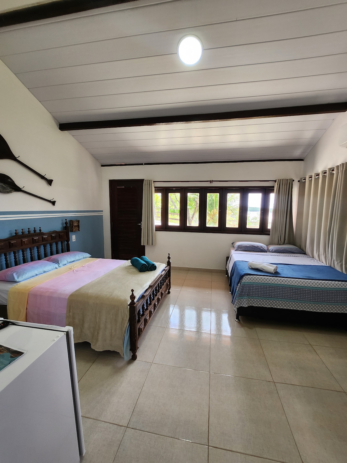 Somos a Pousada Casa da Praticagem. Nossa suite Leme oferece duas camas de solteiro, armário, espelho, ar-condicionado, wi-fi. As áreas comuns contam com uma linda piscina, varanda, lounge, deck super ventilados e de frente para o mar. Oferecemos estacionamento interno e um maravilhoso café da manhã incluso na diária. A vista para o mar é inesquecível. Estamos em frente à nova Orla de Salinópolis, com fácil acesso às praias da Ponta do Espadarte e Maçarico, próximo a restaurantes e bares.