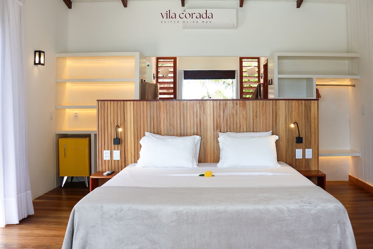 Fique à vontade com conforto na Suíte Pé na Areia nossa joia do hotel. Oferece vista deslumbrante para a piscina e o oceano. Ampla, sofisticada e confortável, é ideal para casais exigentes que buscam uma experiência inesquecível. O ambiente combina design autoral e enxoval premium. No Pé na Areia Boutique Hotel, cada amanhecer é um convite a viver o melhor da hospitalidade, entre o mar, o farol e a tranquilidade de Japaratinga.